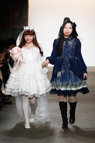 Model Misako Aoki and designer Fan Shumin walks the Soufflesong runway at Nolcha shows during New York Fashion Week Women's Fall/Winter 2016 presented by Neogrid at ArtBeam on February 15, 2016 in New York City.