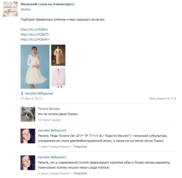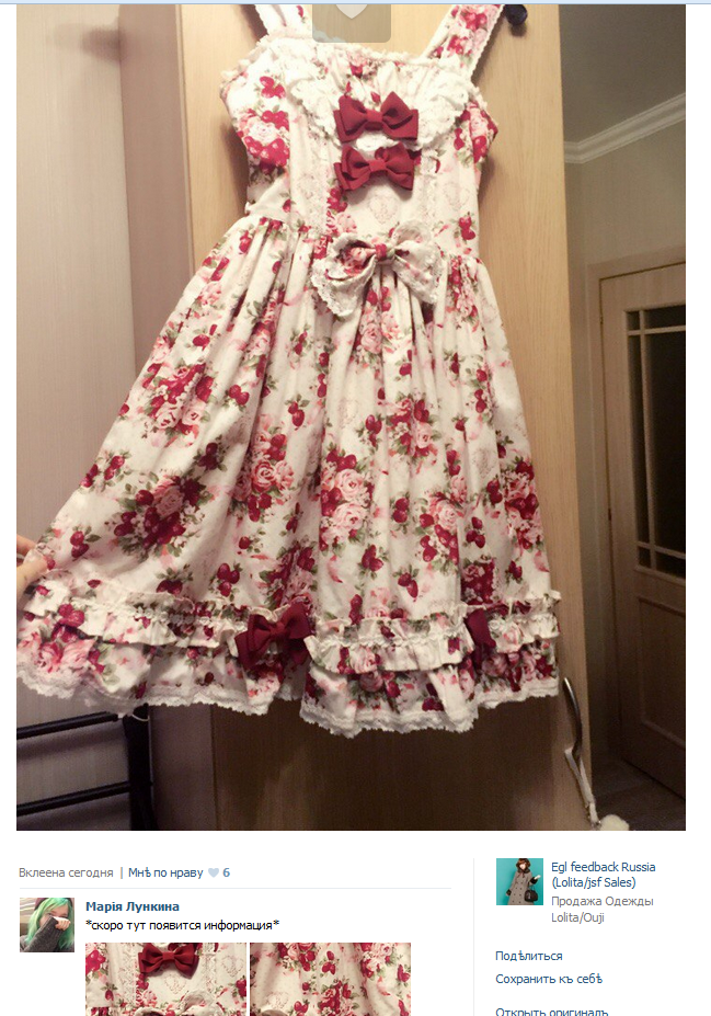 https://vk.com/wall-113775532_572 >Завтра пойду заказывать первое платье^^ >Лолиту изучала 4 года и теперь полностью уверена в своих силах. >Магазин "Купинатао" а платье там вроде там я искала по параметрам: 10-20$ Животные принты. >10-20$ ох щи...
