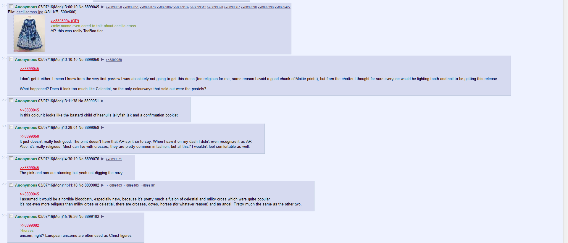 >>41925 Сейчас, кстати, посмотрела, поглядела. И что-то Cosmic показался мне каким-то унылым (не знаю, чому так), а вот Milky Cross просто ангельски-чудесное платье, прям чувствую тонны нежности к нему. Брать, срочно брать! >>41924 А тебя, няша, целую в обе румяные щечки. Ты правда прям помогла величайшему нублу <3