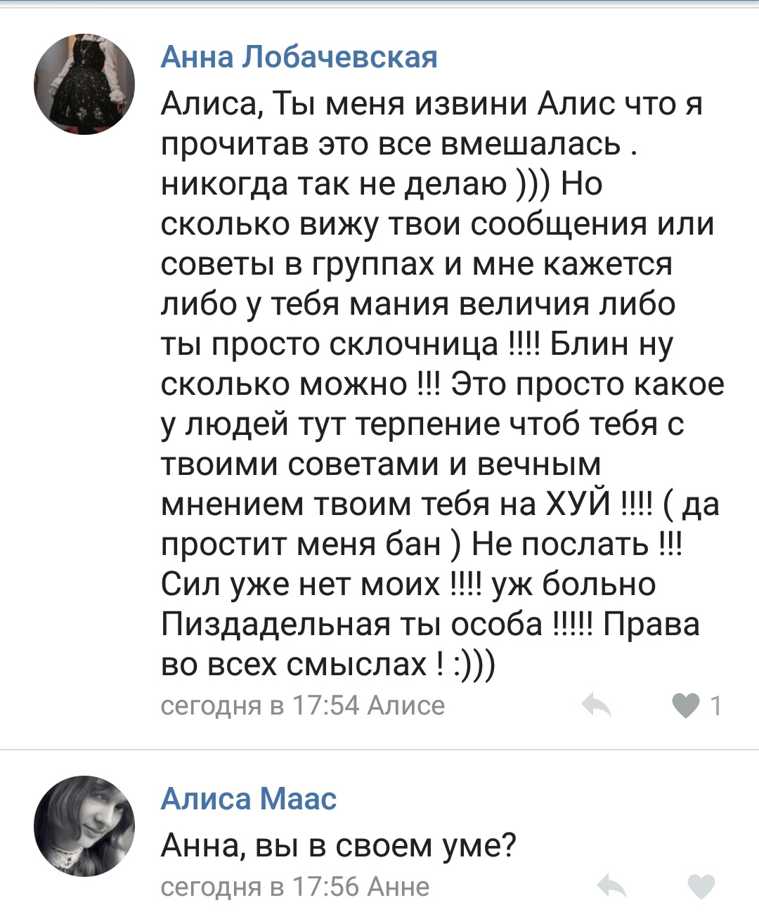 >>40804 Это ты её держишь за идиотку и включила тупую пиздолизку, как будто ей это нужно. >А тебя почитай - так она должна впасть в депрессию патамушта ОБОЖИМОЙ АНОНЧИК НИАЦИНИЛ!!1ОДИН Ну ей-богу... Блять никто не имел этого ввиду пока не пришла ты со своим > А МАШКИНОЙ-МАМАШКИНОЙ НРАВИТСЯ УСРИТЕСЬ СУКИ!! Будто это блять аргумент, Машкиной нравится и платье с русалками которое она сшила и оценила аж на 5 кусков, но оно не перестает быть от этого объективно гавном как и портак спертый у забогорной лолиты.
