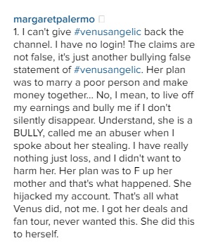 >>42370 Мать Венус, прошу прощения, ебанутая на всю голову, придумывающая офигительные истории не только про свою семью, но и про других людей не предоставляя при этом никаких пруфов и нагло искажая чужие слова. Она контролирует все интернет-страницы дочери абсолютно не скрывая этого. Хотя и сама дочь местами хороша. За ними числятся попытки сбора денег за воздух, перепродажа людям с йоба-наценками, а-ля наши вк-посредники. Однажды дочка начала встречаться с младым человек из Японии, что старше её на 6 лет. Потом пара якобы рассталась, лишь чтобы позже сообщить о женитьбе. Во время псевдо-расставания что со страниц Венус, что со страниц её матери, в адрес парня вылетали обвинения разного сорта мерзости. После объявления свадьбы вскоре объявили, что произошла ошибка с документами (там то произошла, то не произошла) и парень пропал, появившись через несколько месяцев - приехал к ней в Сеул. Мать, имя доступ к аккаунтам Венус, продолжала удалять их совместные фото и писать посты от имени инстаграма Венус из серии "вот фото того, как я изменила своему молодому человеку с лучшим другом парня моей матери, так же моя мать такая несчастная, такая несчастная", рассказывать от своего имени истории о том, как парень Венус преследовал их и взламывал аккаунты. Венус вскоре убежала из дома дабы жить со своим молодым человеком в Японии; матерь же поведала миру о том, что её дочь чуть ли не одержимая алкоголичка, бьющая её, убивающая своих домашних животных и так далее. Мать угрожала удалением канала Венус и разрушением её жизни, если та продолжить быть со своим возлюбленным. На фоне побега дочери мать начала делиться суицидальными нотами в своем инстарамме, историями о том, как Венус и её парень своровали у неё вещи и ютубный канал, о том, что он промывает её дочери голову. Так же матерь успела упомянуть что Венус была незапланированной ошибкой. Ну и под конец - она не собирается возвращать ей её канал, ибо это то, чего и хотела её дочь - самостоятельной жизни. Поправьте, если я что упустила. >>42373 >однако мои знания ангельского не дают мне ее уловить А им двоим безобразное знание языка не мешает во всю разводить драмы на нём, святая простота