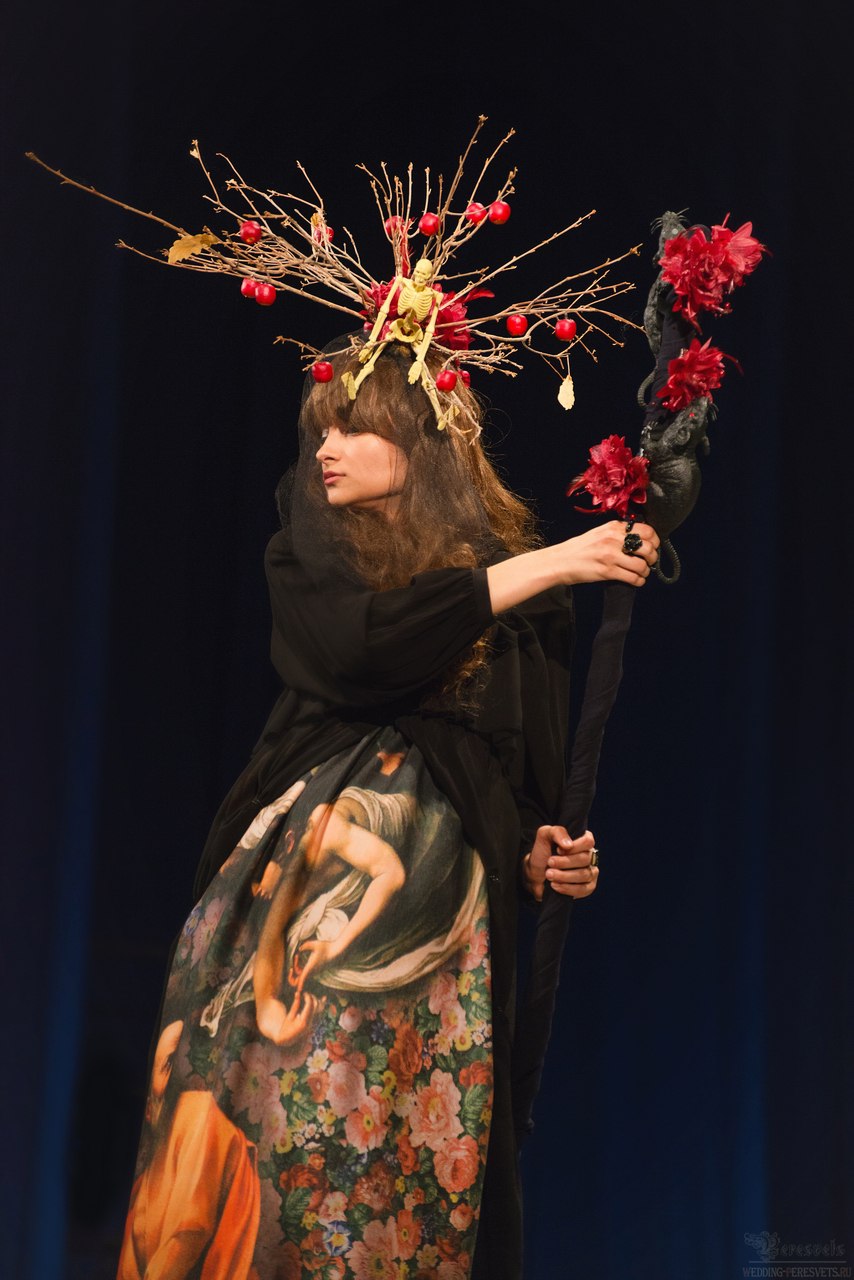 У некоторых? У всех. У Мисс Данжер даже по фоткам качество более-менее только на черно-золотом платье, на остальных это абсолютно средней руки таобао-принт, плюс эта блестящая тонкая ткань - втф, я лолитные платья не для того ношу, чтобы они подчеркивали каждый сосок нюанс содержимого блузок под ними. Орловы делают лепят хорошие принты, но после их показа на глф я плакала кровавыми слезами от качества пошива. Сон Софии шьет очень странно и не всегда качественно, также иногда создается впечатление, что они абсолютно слепые на цвета. Их витражный принт, мне кажется, будет зашкварен, но вроде бабочки неплохие да и эрмитажные ворота вселяют надежду. Однако все-таки это тоже уровень среднего тао. Максюта при всем своем умении шить в принтах ужасен (хотя, может, это просто не его). Однако больше всех наших инди меня бесит Равен энд Роз. Пафоса немеряно, цены дикие как на платья, так и на хеддрессы (5000 р за хедресс с могильными цветами и крашеными акрилом шпажками для мини-шашлыков, серьезно??), притом по качеству полностью поддерживаю вышеотписавшуюся сис - криво и косо, см. пик номер 2. Больше всего мне надежды внушают Мора и Максюта. У последнего все-таки прямые руки, а Мора... У нее странная посадка многих платьев, но есть и очень удачные примеры, типа того лесного платья с прошлого глф, где и принт и фасоны чудесные. Скорее всего, мне она так приглянулась именно этим платьем - помню, что когда увидела его на фесте первая мысль была "вау, выглядит почти как беби".