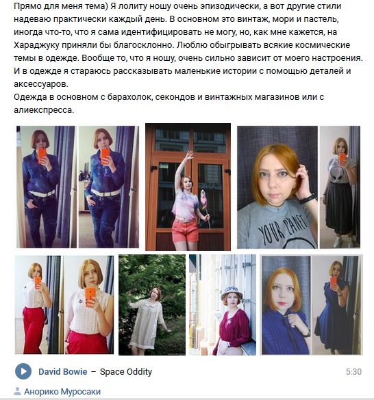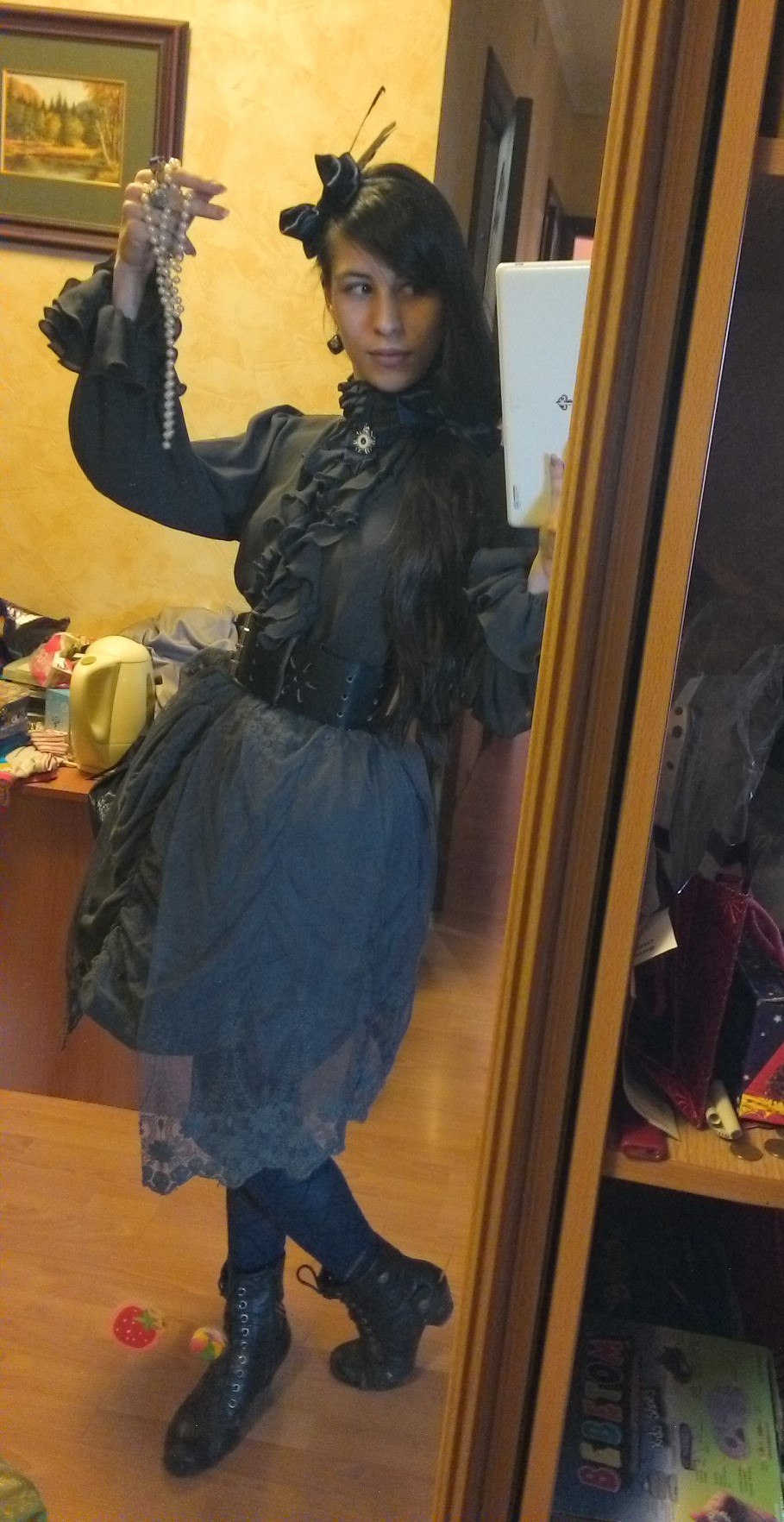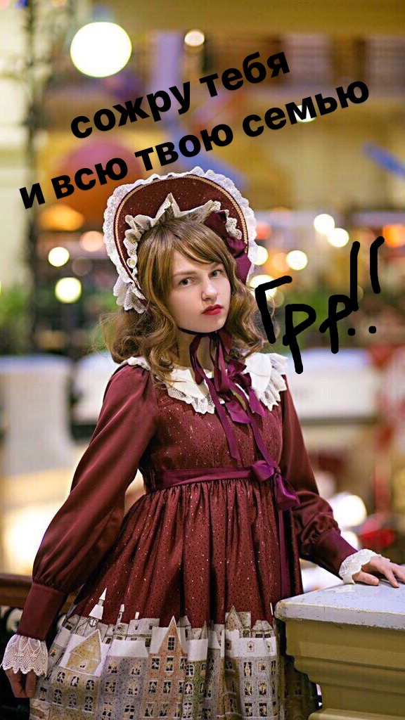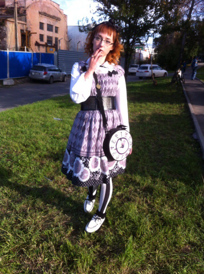 А что касается тян выше, не вижу смысла ее критиковать. Поясняю. Видно, что старается, но в связи с возрастом, где родители не считают нужным покупать дочери что-то такое дорогое и бесполезное, как лолита, не может сделать норм коорд. Так что собрано из цивила, более менее подобнанного под стиль. Как минимум каноны то соблюдены, НО, вещи неподходящие, ибо из шкафа. Грустно. Надеюсь, когда станет постарше и сможет сама зарабатывать, то желание делать норм не пропадет.