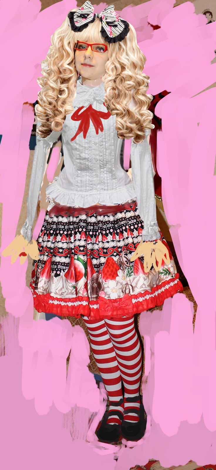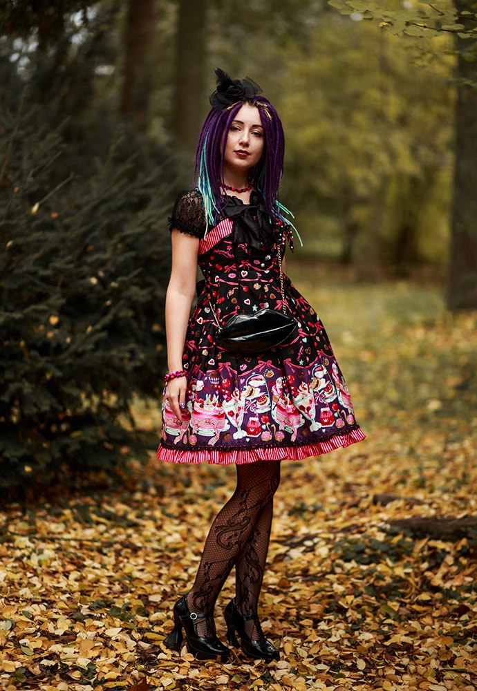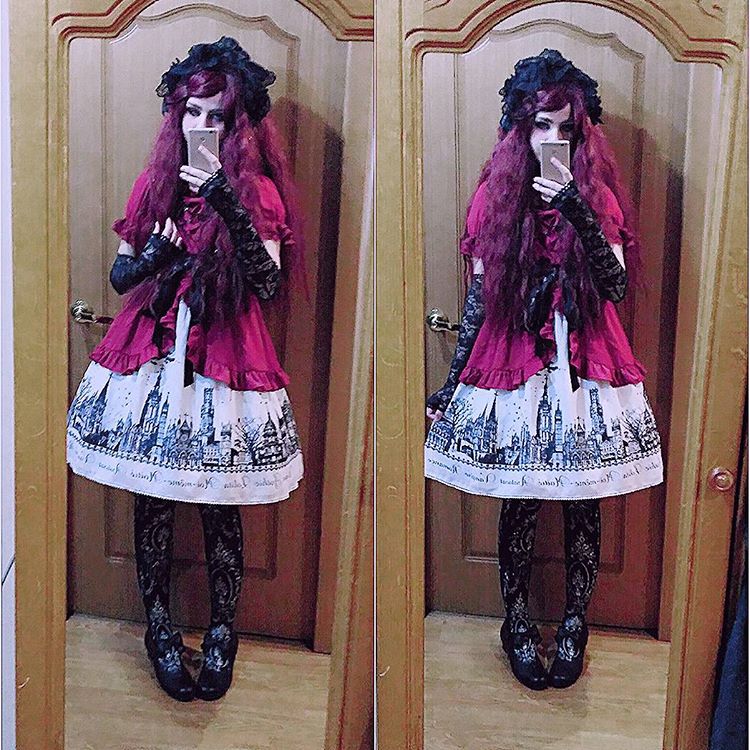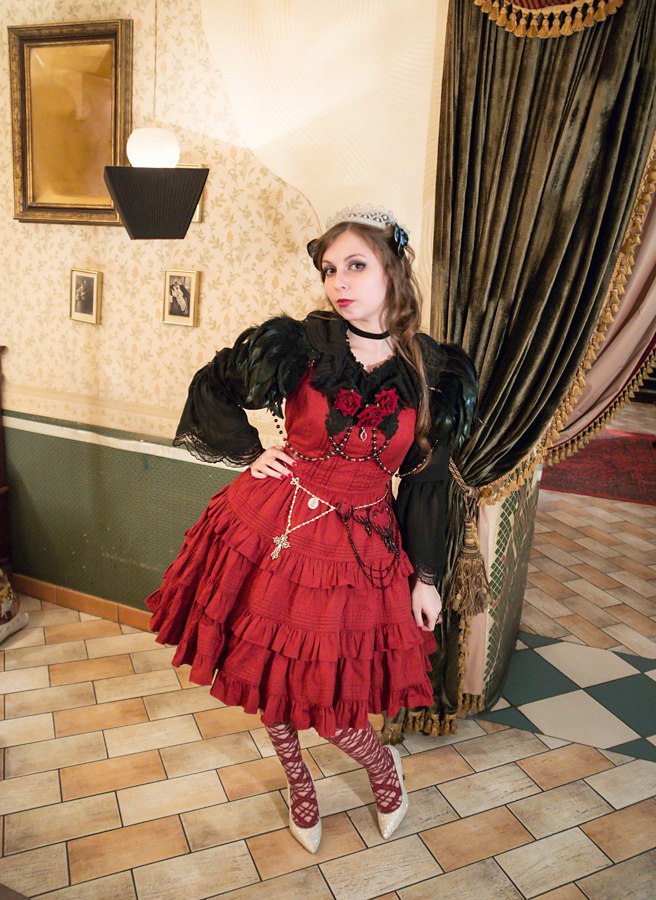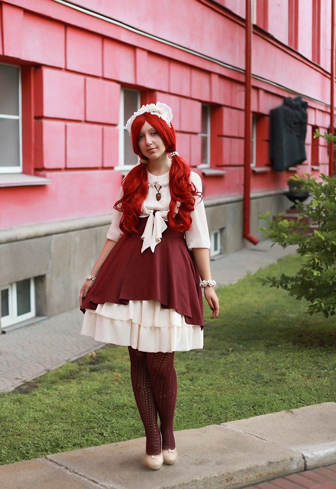 >>46225 даже не знаю, что не так с этой тян, она как выглядит из-шкафа-лоли, так и продолжает. на этом фото и блузка лолитная и юбка, и красный цвет принта поддержан аксессуарами, а все равно не то.