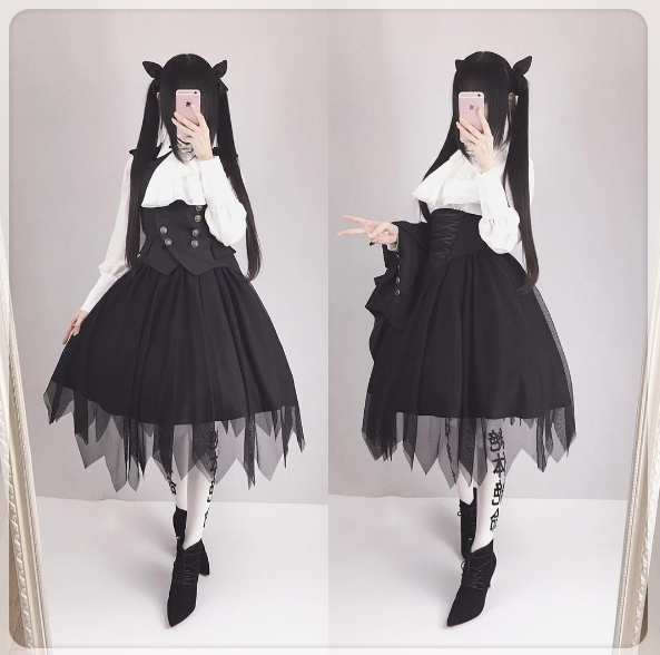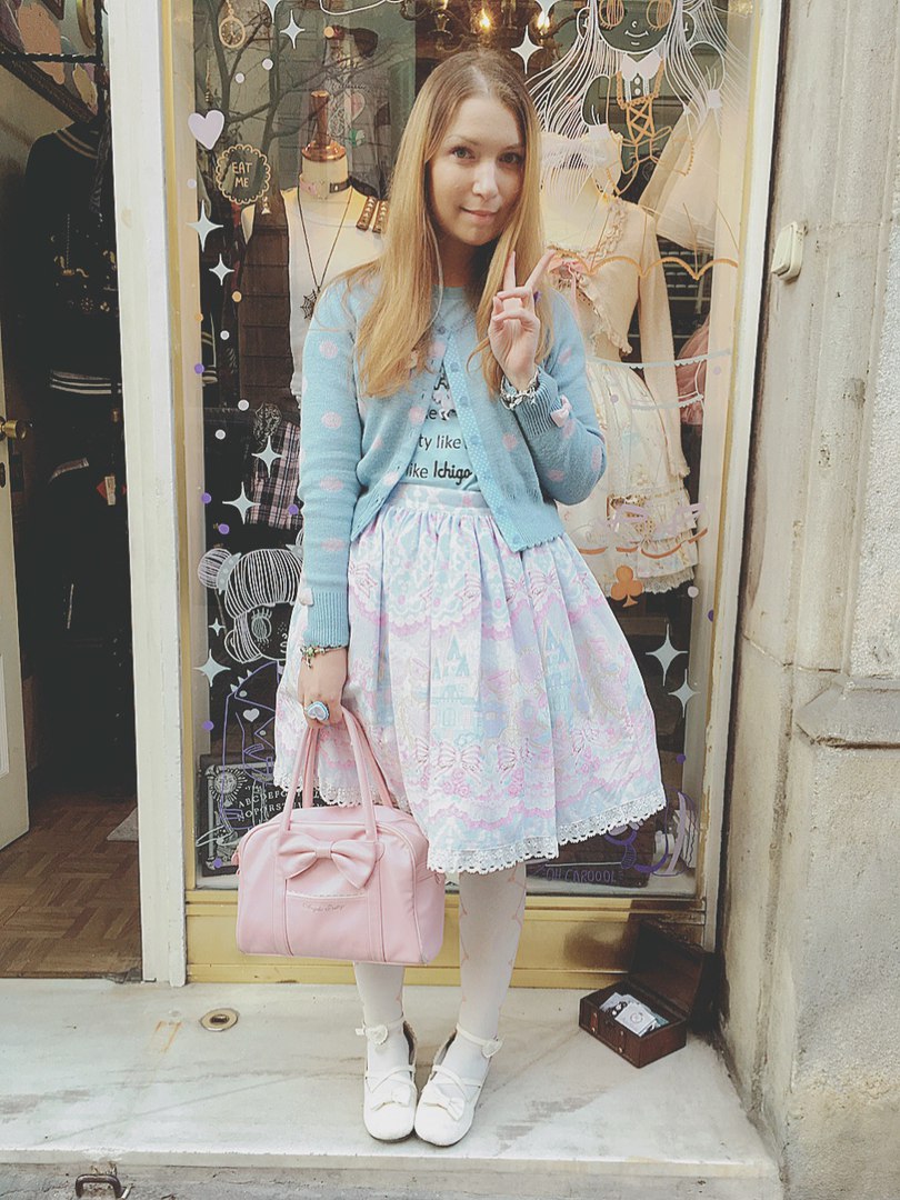 Несу из лайфблога, чтобы не расслаблялись. Даже удивлена, что никто не притащил. Ума не приложу, что заставило ее подумать, что вот этот коорд - лолита? В особенности, эта юбка.