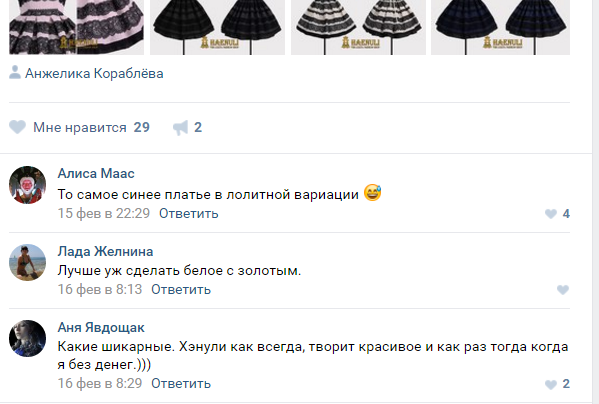 Хей! Кто-нибудь заказывал предметы гардероба с группы Анны Романовой (✟ Wonder ☆ mooN)? Возникли сложности с нынешним посредником с тао, в планах заказать через группу платье, вопрос - не мелькала ли группа в каких-то скандалах с обманом клиентов и т.д.?