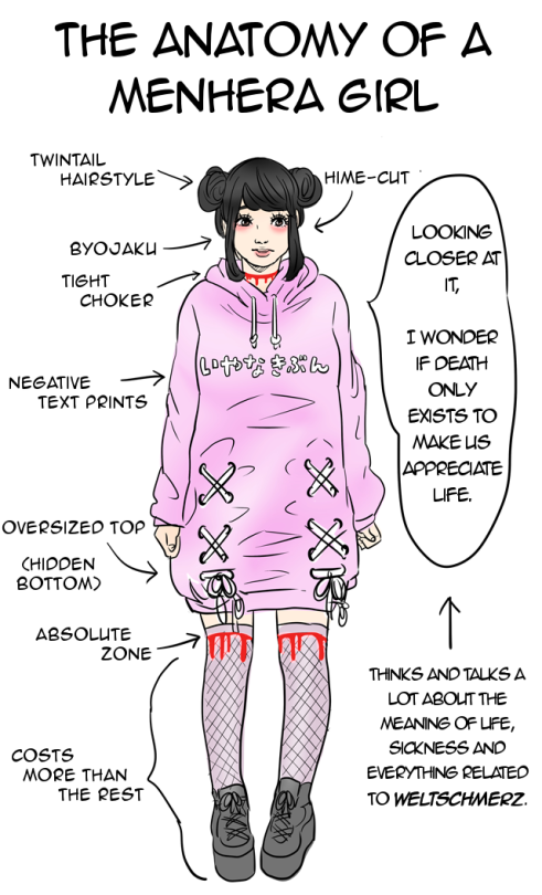 >>46944 Диванный эксперт по сортам говна вещает! Пастель-гот - зародился на тумблере, рассматривать нужно как западный стиль; символика тяготеет к оккультным символам, сатанизму, гранжу, нео-готике, чуть более иронично и со светлыми цветовыми акцентами обыгранной; более взрослый сексуализированный образ. Ями-каваии - в первую очередь, японское явление, опять же, если смотрим на темы аутфитов и символику - это будет скорее гротескное мультяшное гуро, больницы, сейфуку, бинты - совсем другие вещи. Я думаю, у тебя имеет место быть путаница с creepy cute, который действительно является восточным более "кавайным" аналогом пастель-гота, но и там своя специфика - комическое насилие в пастельных цветах, но с уклоном скорее в хэллоуин, чем в больницу - все эти глазные яблоки, летучие мыши, рожки-крылышки и т д.