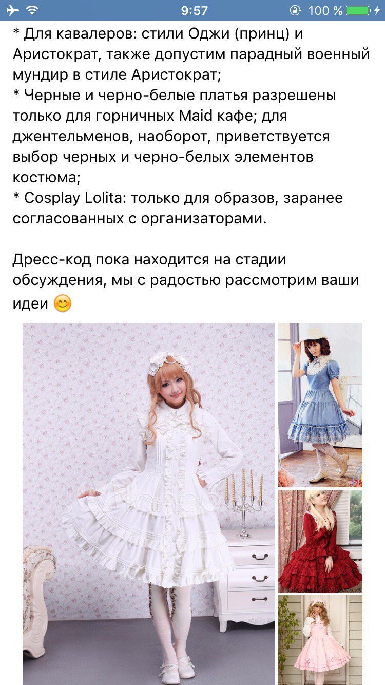 >>47114 если бы не было вот этого правильное\неправильно , а просто было бы как делают в оф.соо тематические миты "дресс код: классика\свитт , цвета:белые\розовые\голубые" то было бы норм а с этими "неправильными" направляниями выглядит, как писали в комментах уже, будто просто кому то понравились фотки лолиток и они решили для них что то устроить, сами не зная чего :\
