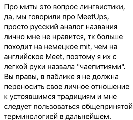 А все эти орги митов срать хотели на гостей, они организуют его для себя и поэтому им достаточно 3-5 подруженек для оттяга, а все остальные — на раз пришли, так и быть, сядьте вокруг и создавайте фоновую атмосферу. и надо сказать, что именно такое отношение друг к другу и убило соо