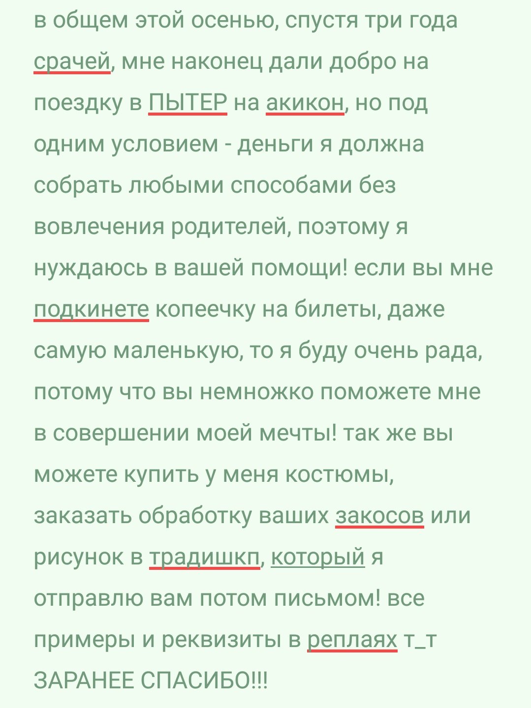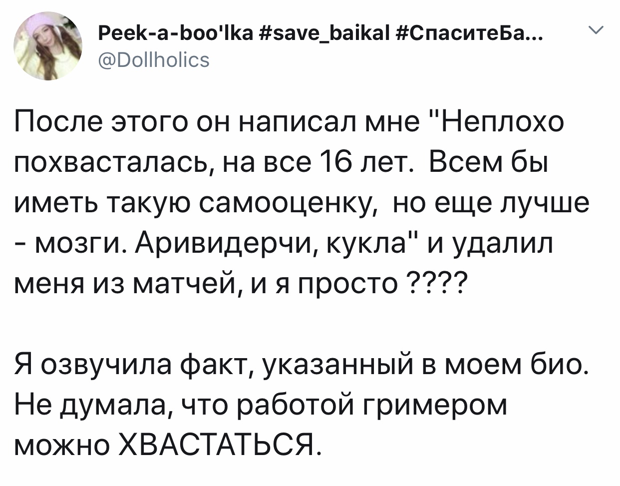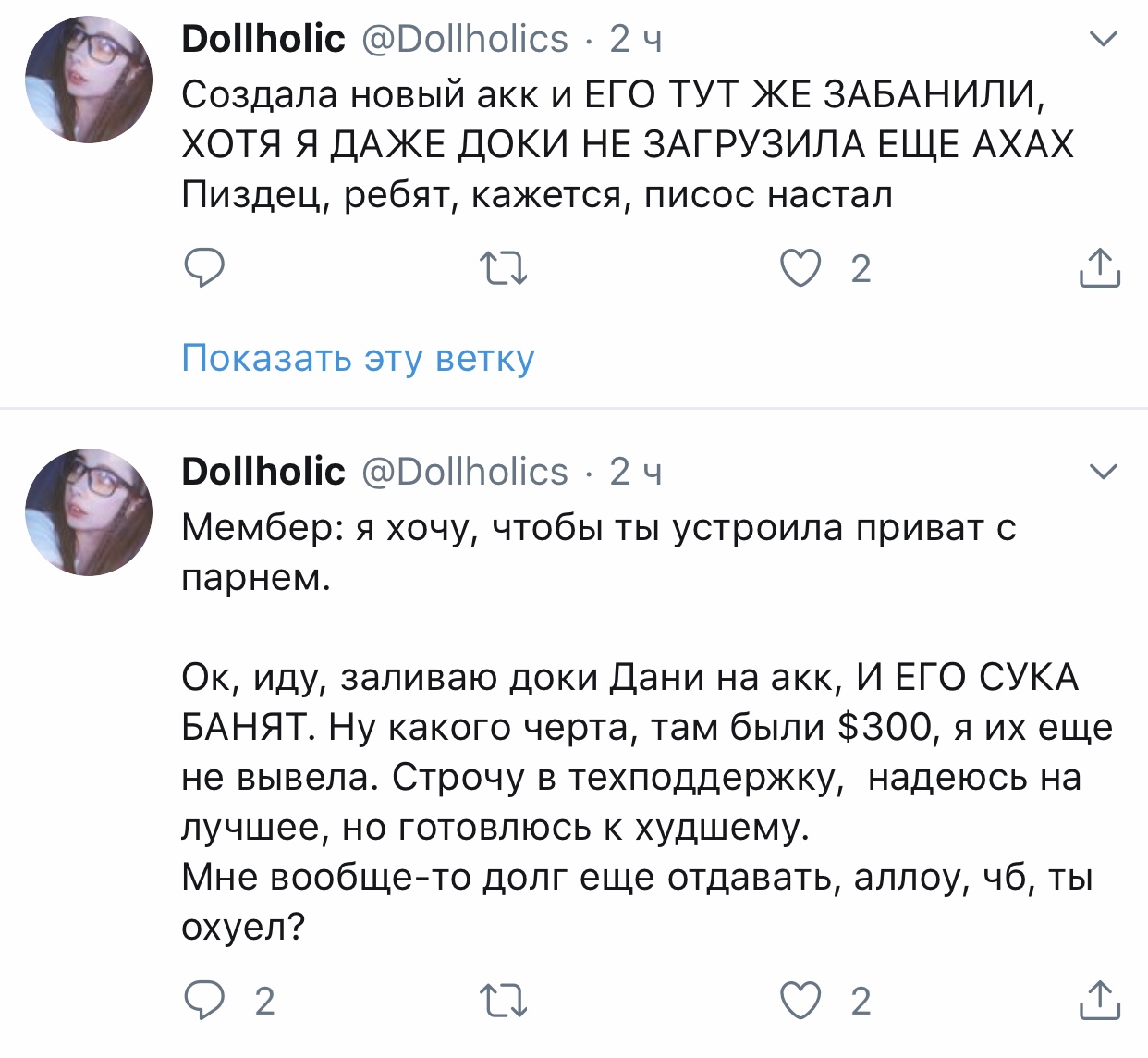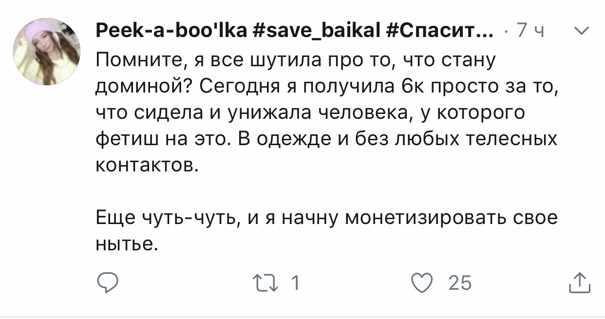 Майичка, у меня нет к тебе никаких претензий по поводу твоего заработка, но, думаю, твоим пиздализикам будет интересно узнать про то, как ты деньги воровала. Ох-ах, родители абьюзят, ой-ой, ты так страдала, так страдала от этой проблемы... Только исправлять ее пошла только тогда, когда тебя спалили с обосранной жопой, браво!