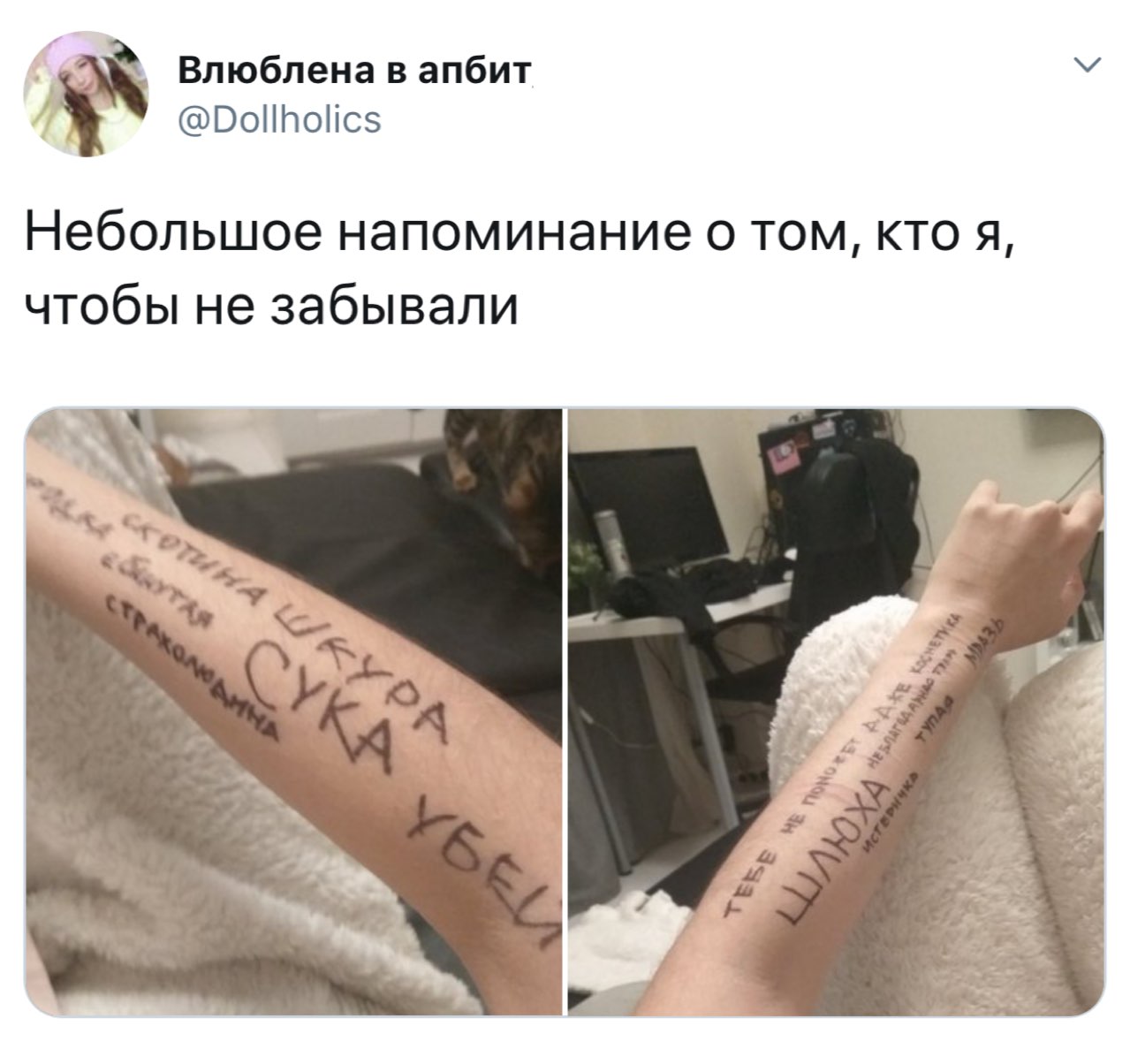 Зачем ты вообще кого-то зовешь что-то обсуждать в личку, если тебе все ясно? Если отбросить твою личную неприязнь к этим двум, то доводов у тебя и не останется, в принципе, раз ты так прицепилась к одной фразе и пытаешься за счет нее вытащить все тобой сказанное. Про любящую мамку было очевидной иронией, а ты уже желчью во все стороны брызжешь. Нет, Вандервульвочка, родители не обязаны лелеять отпрысков до их пенсии, да и вообще за взрослыми уже людьми ухаживать. Я искренне рада, что твоя мама озаботилась твоим ментальным здоровьем. Это, однако, не дает тебе права издеваться над тем, кому с этим не так повезло а ты именно что издеваешься, потому что сам человек в себе этого может и не видеть, сколько бы ему об этом не говорили. В твоем гяру-мирке может все хорошо и все проститутки какают бабочками, но реальность такова, что туда идут не от хорошей жизни и не при широких амбициях. Возможно, если бы ей мамка когда-то оплатила курсы визажиста, жизнь у нее тоже бы сложилась иначе, но реальность такова, что ей о хорошей жизни приходится только фантазировать. Но нет, лучше же посмеяться над чьими-то нездоровыми отношениями с мамкой, которая отправляет дочь скакать по хуям, когда сама была в токсичной связи. Просто кого-то еще и не любят, но да, это отличный повод посмеяться, браво, Алкоголик.