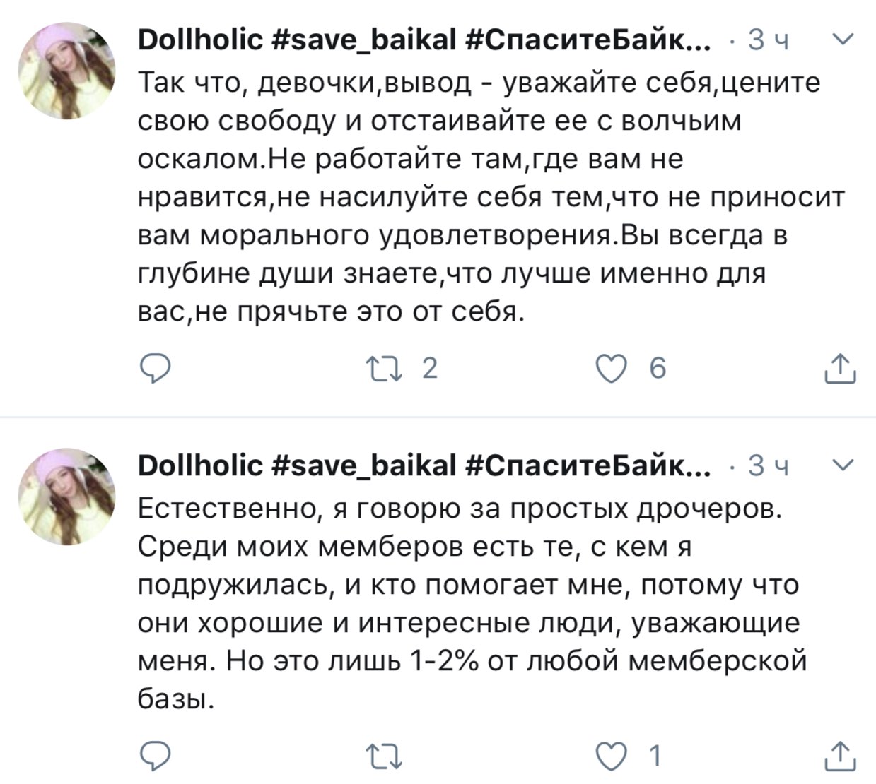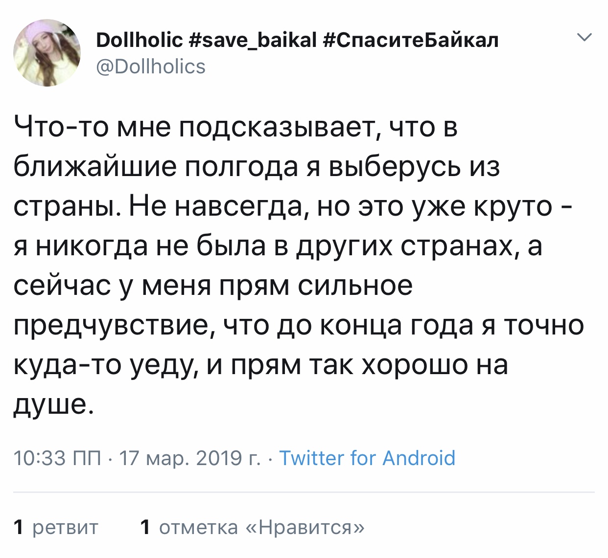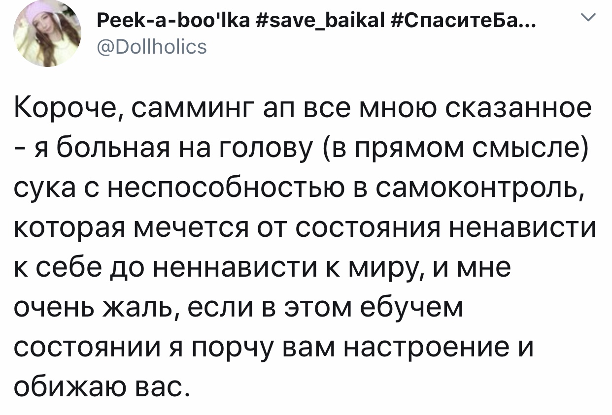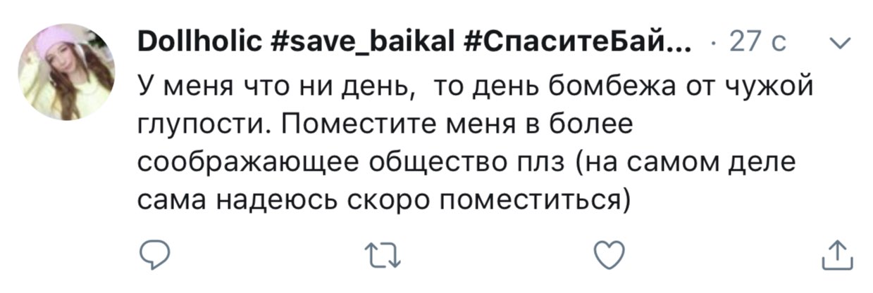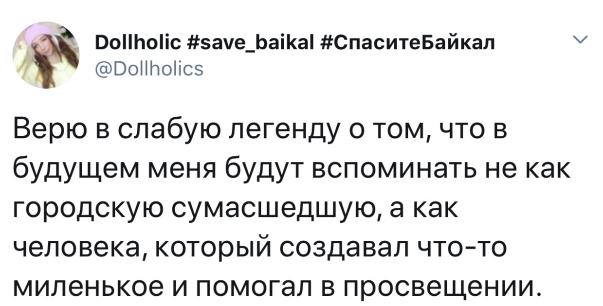 Ой, Холичка, да зачем тебе спасать этот Байкал и этих тупых блогеров, которые ничего не понимают в бьюти-хуюти (то ли дело ты, светило, которое вылетело со всех работ не пройдя испытательного срока). В этой стране делать больше решительно нечего, тут скоро одно пепелище останется и пещерные люди, езжай уже в сказочную Швецию, светлый ты наш человечик, и спасай там бедных мигрантов от недоеба напару с бисексуальным геем-Даней. Поганая старана не выдержит такой потери и рухнет еще быстрее.