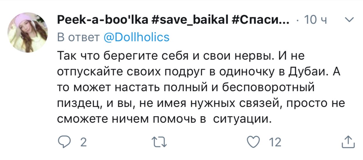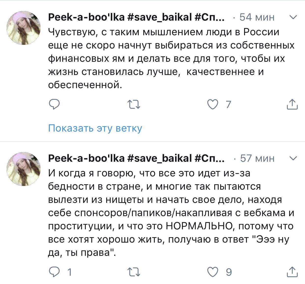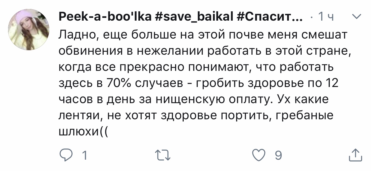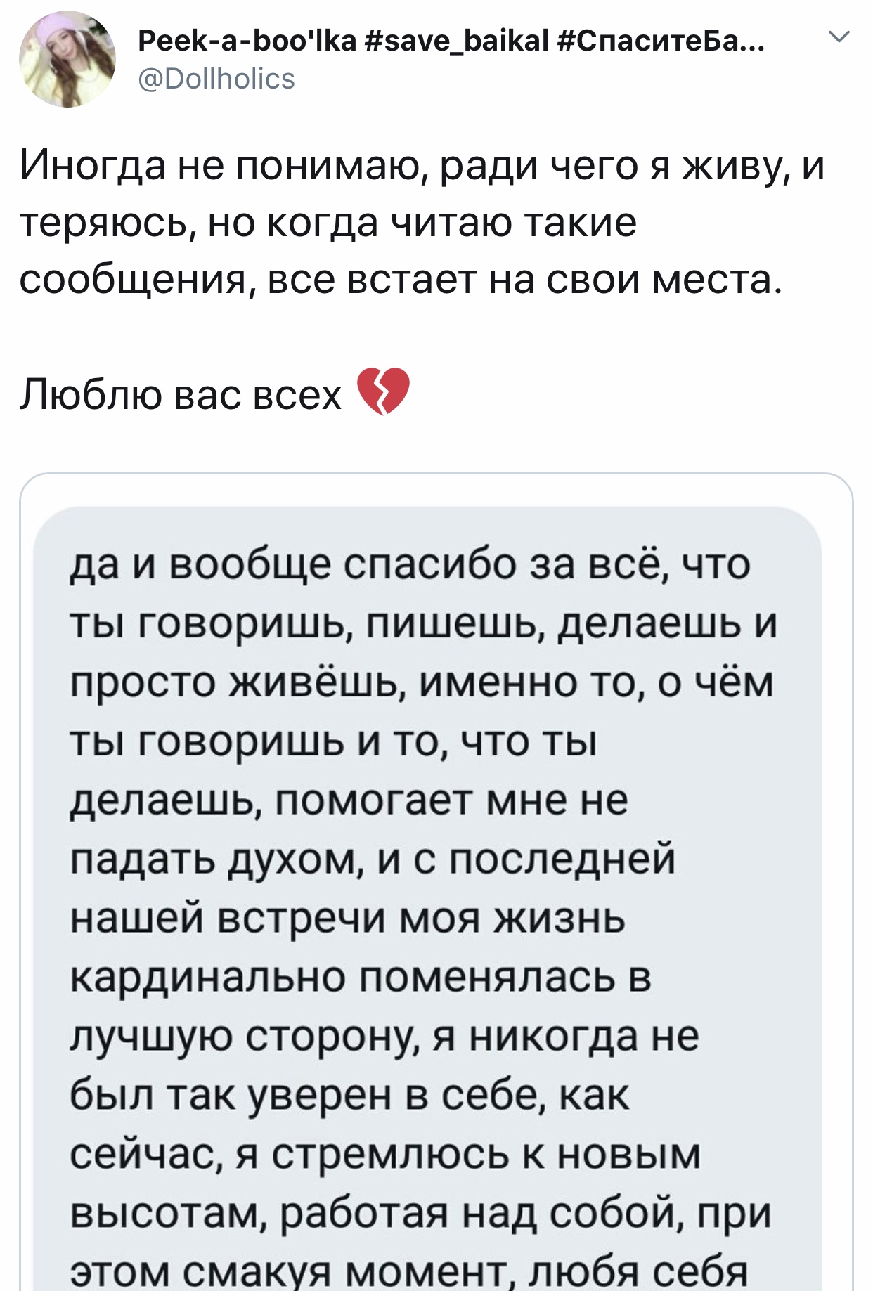 Ой, Холичка, да зачем тебе спасать этот Байкал и этих тупых блогеров, которые ничего не понимают в бьюти-хуюти (то ли дело ты, светило, которое вылетело со всех работ не пройдя испытательного срока). В этой стране делать больше решительно нечего, тут скоро одно пепелище останется и пещерные люди, езжай уже в сказочную Швецию, светлый ты наш человечик, и спасай там бедных мигрантов от недоеба напару с бисексуальным геем-Даней. Поганая старана не выдержит такой потери и рухнет еще быстрее.