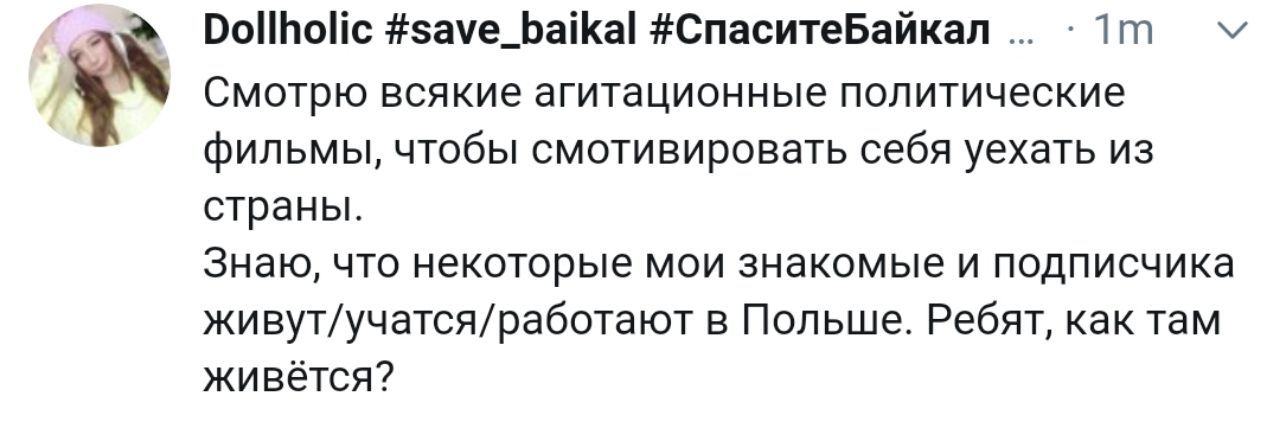 Пич, ты ну совсем хуево шифруешься, уже даже смеяться не над чем, серьезно. Ты выдаешь себя с потрохами всеми своими фразочками, как бы ты там не перестраивала предложения. Радуйся, что у тебя любящая мама, которая смогла отправить тебя в Польшу, но не все за границу выезжающие оказываются там именно благодаря любящим родителям и их деньгам