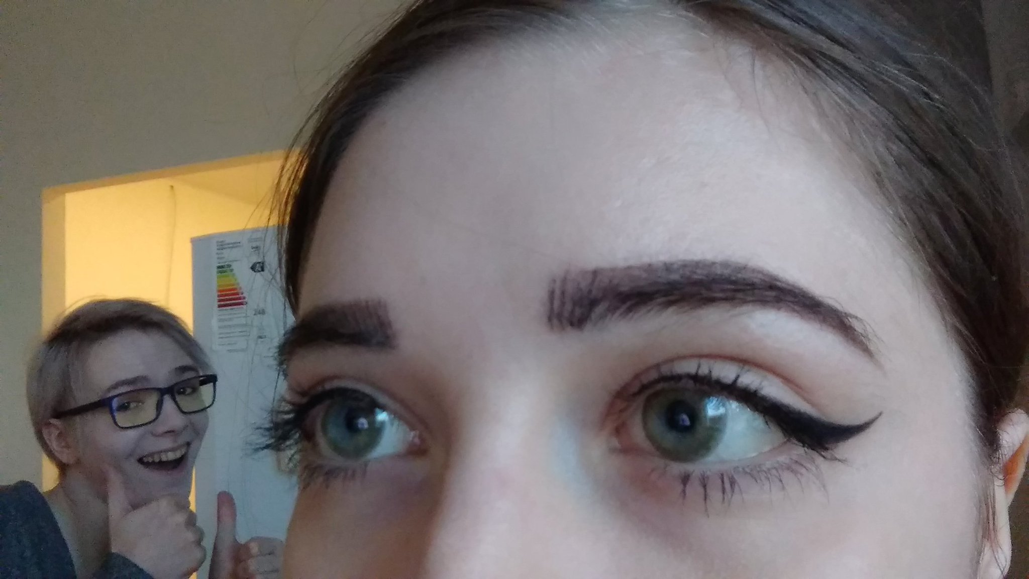 >>57071 Вторая фотография - закос под хентай, где глаза в кучу и язык наружу. Хотя бы попрактиковалась, прежде чем показываться, нелепо и тупо выглядит.