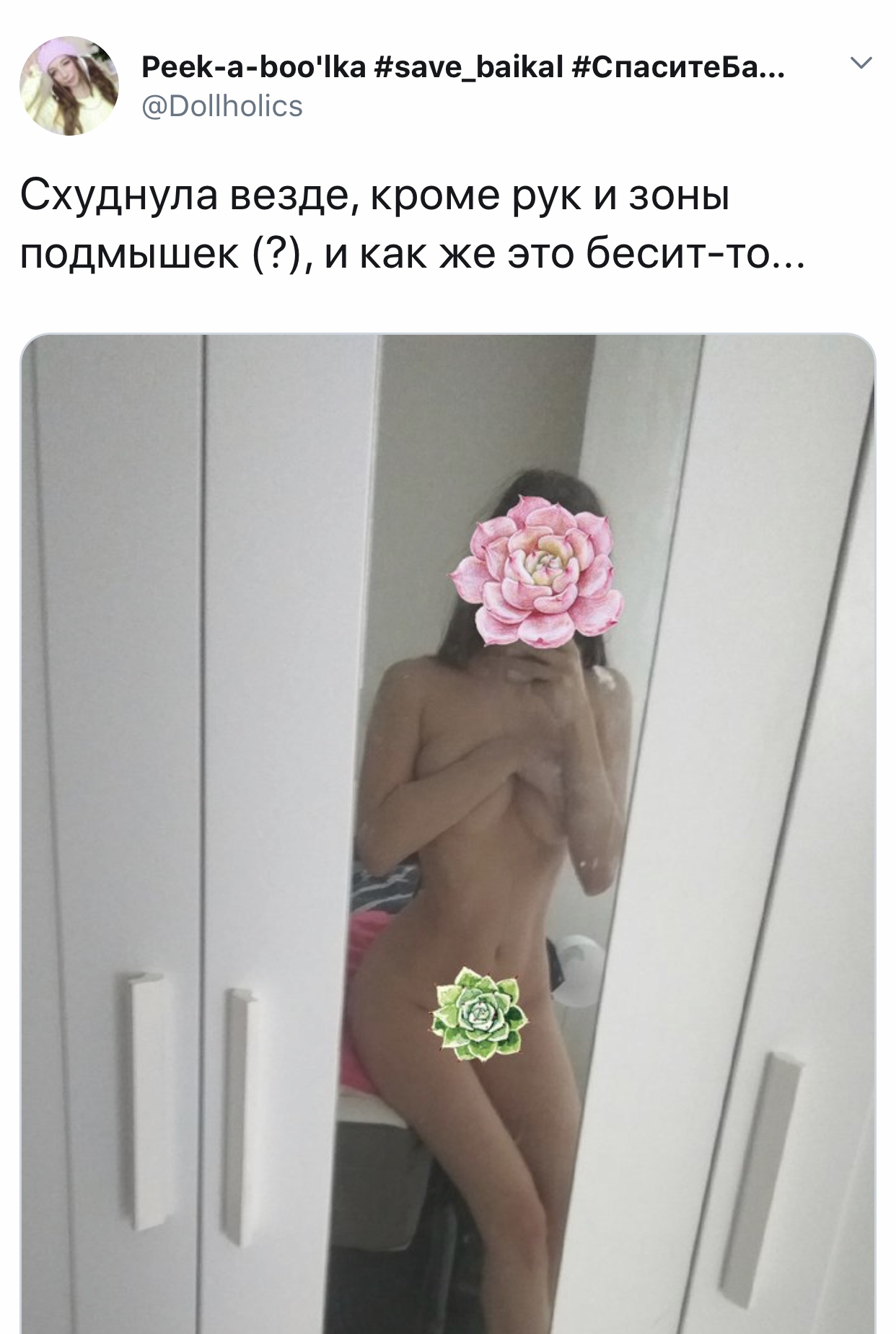 Расскажите в чем смысл рисовать фигуру, которой у тебя нет и не будет? Ну ладно жопу можно накачать (опять не вафлин случай), но такую талию при фигуре-прямоугольник никак не сделать ни диетами, ничем. Зачем грудь прижимать или рисовать шары? Сделают комплимент в твиттере и дальше что? Это комплимент не твоей фигуре, а рисунку. Почему нельзя спокойно жить со своим прямоугольником, почему надо обязательно везде и во всем врать? Еще эта мнимая скромность и кокетство под очевидно обработанными фотками просто фублять. И этот человек лезет всех жизни учить.