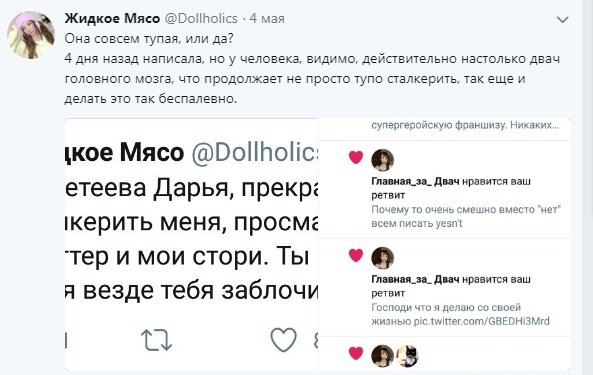 >>53530 Пост, который даже мог быть написан кем-то другим. Подружкой, например. Ты поясни, почему она тебя так задевает, что ты ее так сталкеришь, что скринишь все посты. Мне даже немного не по себе от такого больного увлечения кем-то.