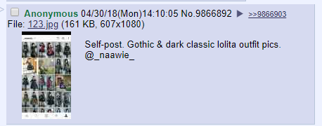 >>53294 Носить лолитные платья как цивил не запрещено, и многие лолиты в повседневности так делают. Мы о тебе не узнаем, если ты не будешь нести свои фото в соо или выкладывать их с тегами лолитафэшон. В принципе, если ты очень ранимая и боишься осуждения, я бы рекомендовала тебе вообще не ходить на борды, но каждый сам волен решать, что ему делать со своей жизнью и своей нервной системой. А если ты спрашиваешь потому, что хочешь выложить свои фотки в какую-то группу по стилю, но хочешь, чтобы лично к тебе планочка качества аутфита была пониже, потому что ты хикка и не хочешь полноценно вкатываться, то это так не работает.