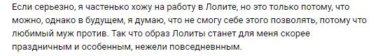 И, кстати, да, каждая такая прямо орёт "моя швея всё умеет!! это вы хотите страного". Посмотри на Жорник и подумай, её платья достаточно хорошо сшиты с точки зрения повседневной одежды, но это типичный уровень ателье-лолиты. И это не то.