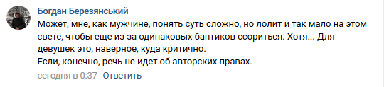 Похуй на реплики, но от Кристиночки аж пичот. Говорить про "фу ношеное тремя до тебя бурандо", но при это иметь прокат реплик в аренду. Усираться на тему - реплика не воровство, но зато как свое сраное творчество защищать, так пок-пок авторское право. Мерзкое лицемерие. Еще и ручной петушок ее смешной высовывается, защищает свою гототелочку. Отвратная парочка.