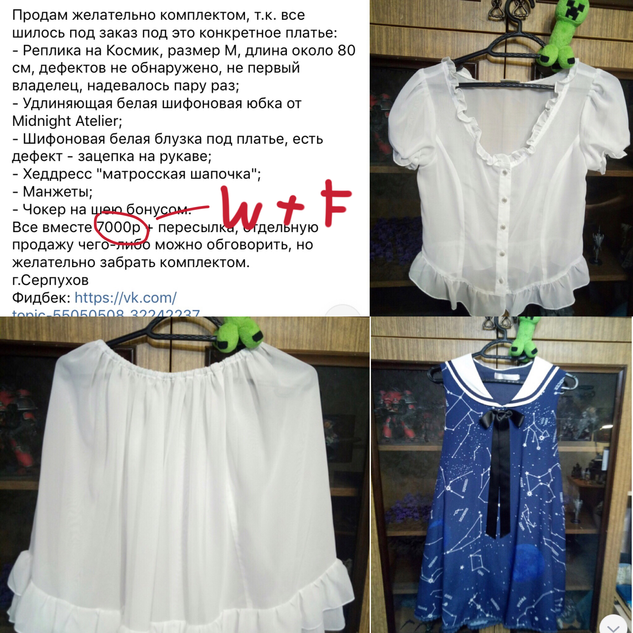 Плачу с нашей соо барахолки, ну серьёзно 8 косарей туника с тао за 200 юаней , она серьёзно? Где админы, в группе половина шлака к лолите не имеющее отношение, футболки, шорты из остина, анимушные заколки и вообще какая то бомжатина на фоне ковра и запылённых сервантов времен совка