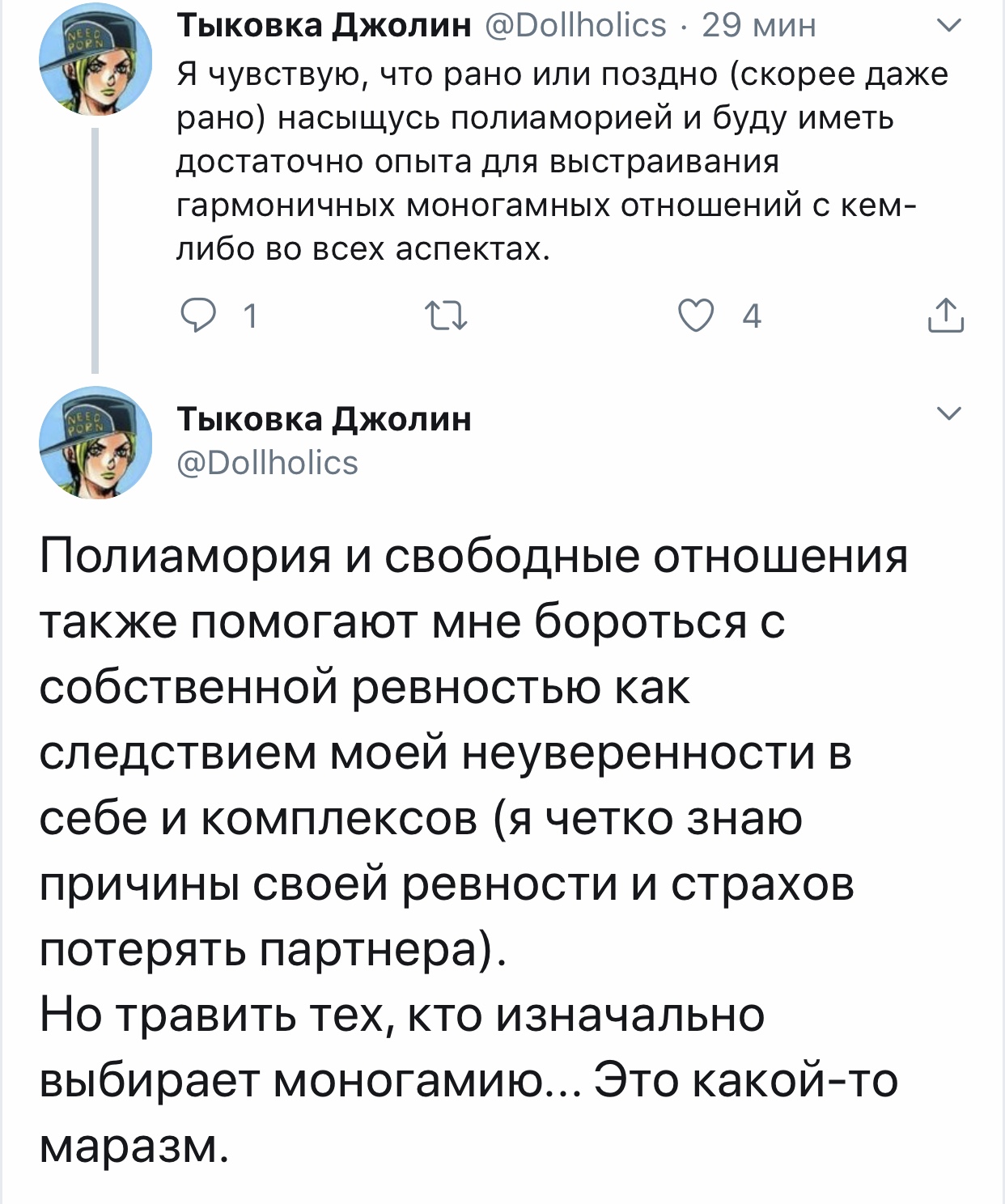 Димочка таки воеменами поебывает нашу полоумную писечку, а она вся в страданиях, что ебун-полиаморыш никак не бросает Лену? Ох уж эти сложные полиаморные отношения одноклеточных.