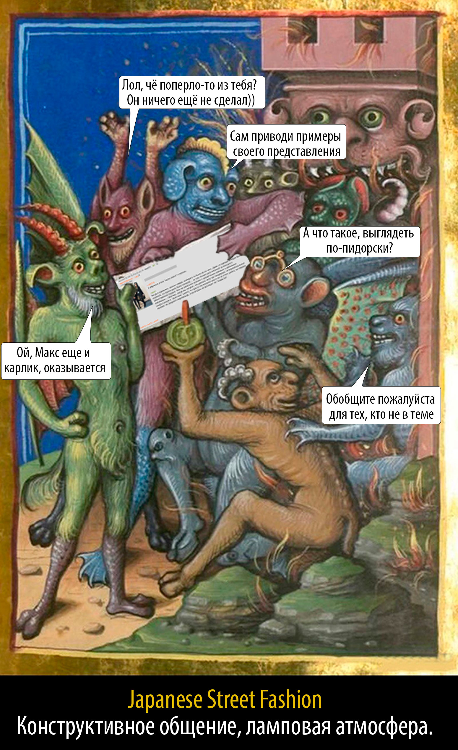 В далёком году, когда ещё было живо главсоо, я пришла в лолиту. Активно общалась. Проблема в том, что это было не нормальное общение, а какое-то бесоебство. Когда я сейчас читаю свои старые комментарии, я удивляюсь, как меня не забанили нахуй и не сделали персоной нон грата. Если бы я не знала, что это я, решила бы, что человек вылез из глухой деревни.