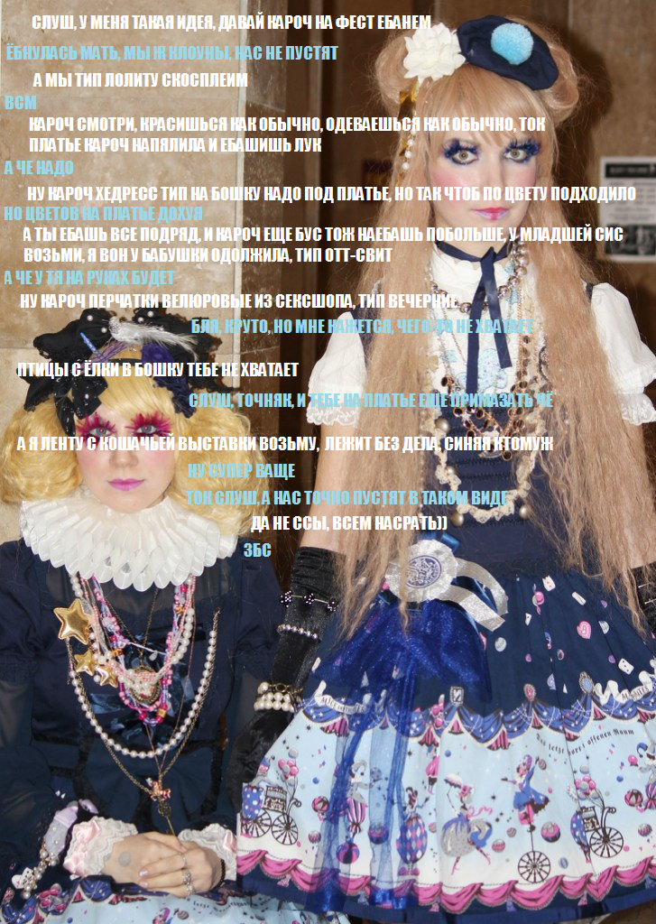Скучно сидеть дома? Самое время подвачевать капчу, сосиса! Ведь только здесь ты сможешь: - полюбоваться на самых кринжевых представителей западного соо; - подыскать себе работу; - поплакать по давно ушедшим богинькам; - понять, совместима ли лолита и эротика; - пообсуждать муняшек с 1,5 платьями в гардеробе; - решить, у кого самый бохатый гардероб.