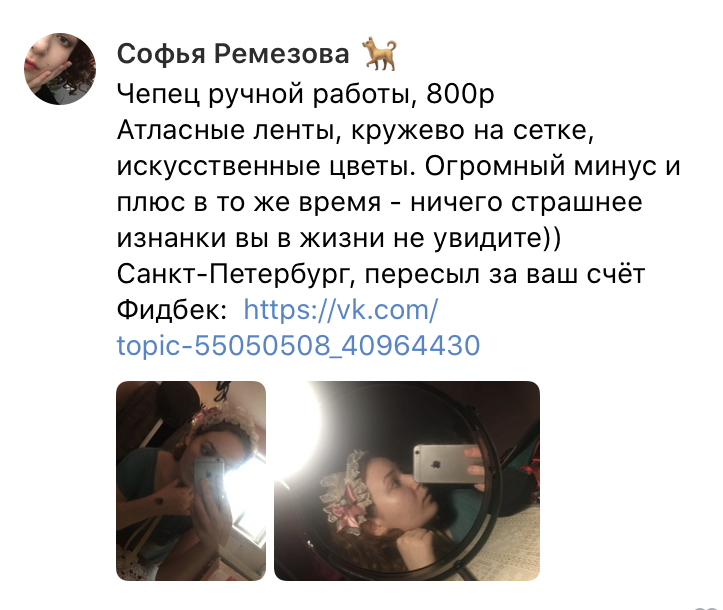 >>64915 Ошибка с размером, жирный оверпрайс, где окончательная цена вовсе не окончательная и придётся выложить ещё тыщи 2 сверху+ на 500 руб больше за доставку - и ещё + за доставку по региону, странное общение то на ты, то внезапно на вы. Платье с тао через неё становится дороже практически вдвое. Когда я была зеленой и пришла в лолиту то не понимала, а когда начала сама считать и смотреть прифигела, платье за 4500 у неё превращается в 9000руб