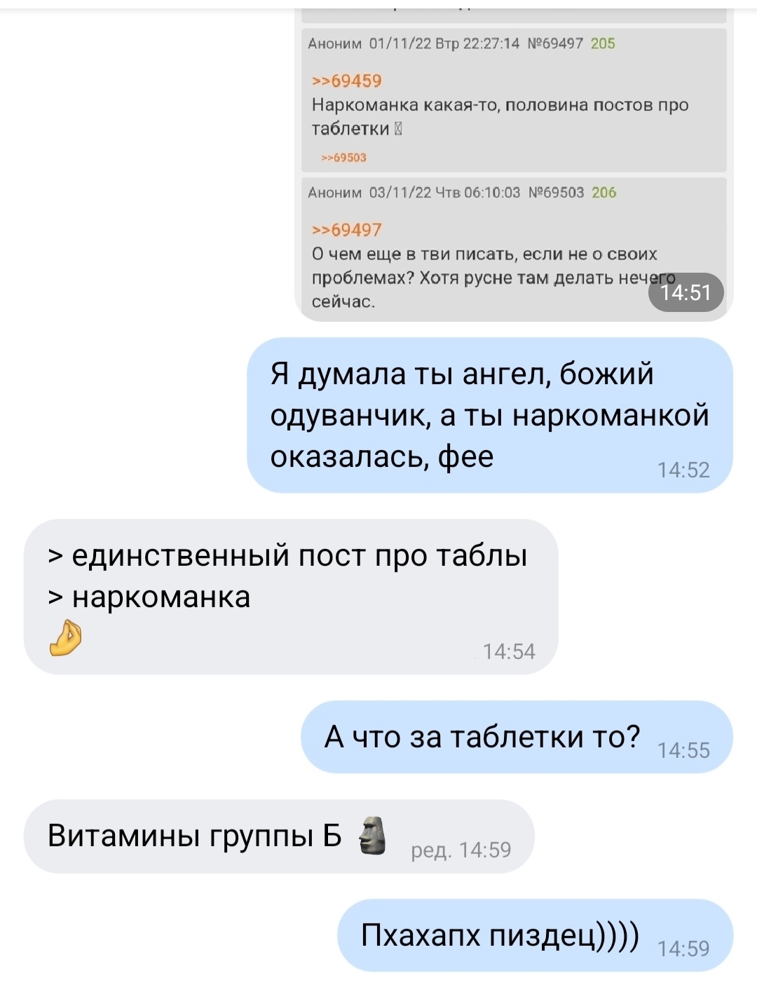 >>70277 Вже год прошел, я все угараю с этого))), нет мне не жаль, но немного жаль что напоказ мы наши чувства выставляли что няша проигнорила, но как же было смешно бацтить, может кловн я, зато не печальный клоун как некоторые. Да, были подружками, даже больше, могло быть намного больше, но эйджистка сука и арбузерша)))) Не слышно ни видно ее чтото, можт карма прилетела)))