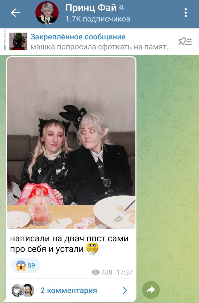 >>70703 >>70708 Если ты про группу вк, я была на сходке. Познакомилась с детьми с несоответствующими полу местоимениями. Они продолжают гулять мелкой конфочкой, подтягивают каких-то других подростков с жсф. Я просто в ужасе с этих косплееров. И фан факт, что на сходку пришли две девочки в одинаковом коорде с али, те самые расфоршенные блузка и юбка.