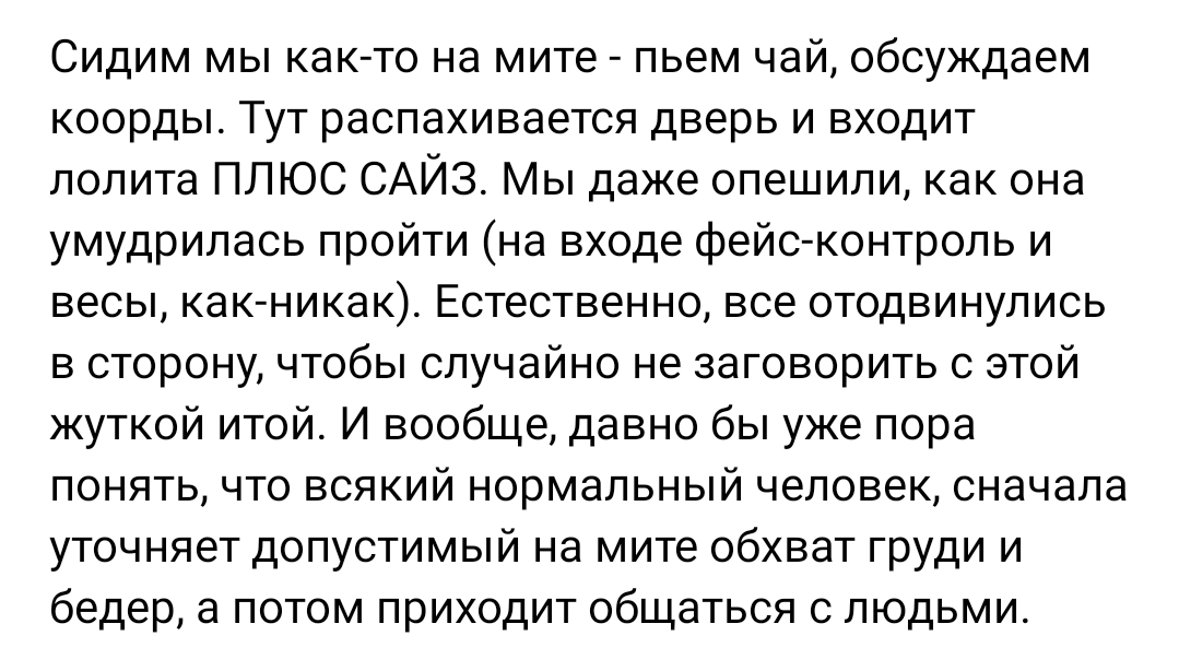 >>70172 Я наоборот худая... Но я ж не лезу к другим людям, потому что не имею права это делать.