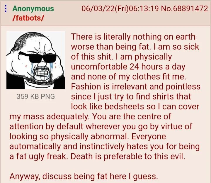 >>70199 Да когда ты успокоишься уже, ебанашка. У худых тоже полно проблем и их тоже гнобят (но почему-то не на дваче, а ирл). На тебя в детстве жирная кондукторша в трамвае села, что ли? Расскажи нам, почему тебя это так ебет, чем ты обижена. Но для начала выйди на улицу и подыши свежим воздухом.