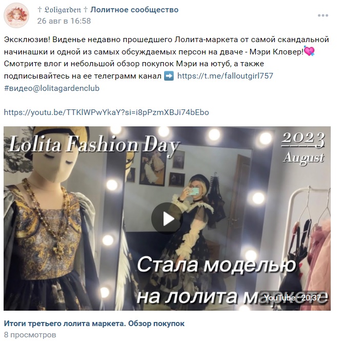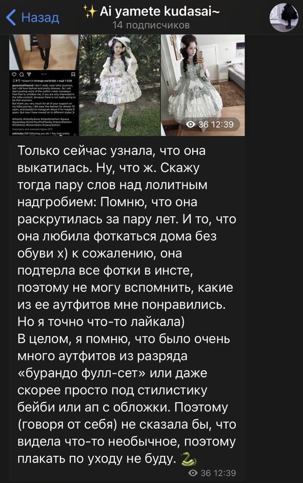 Хотела недавно вернуться, походить на встречи, но поняла что даже закупаться негде. Недавно начала интересоваться жизнью сообщество, как бывшие друзья и тд. Удивилась что многие ушли в вебкам и подобные отросли, сделали операции… Вот тебе и невинный стиль. Разочаровывает конечно современные тенденции в сообществе.