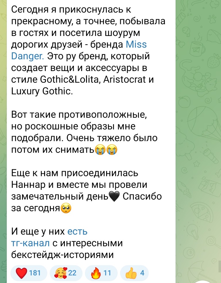 Я веду прямой репортаж с места событий. Как известно, участницы преступной группировки ЧВК Лолита вероломно создали оппозиционное лайфблогу нетоксичноетм соо для начинах. Каковы их цели? Добиваются ли они свержения правящей верхушки элитки и упразднения священных канонов стиля? Кто эти три загадочных ноунейма в админах, каким образом эйджплеершу до сих пор не погнали из коммьюнити, и при чём тут вернувшаяся легенда лайфстайла - Яна Голикова? Наши крысы-тян корреспонденты будут держать вас в курсе, дорогие сосисы.