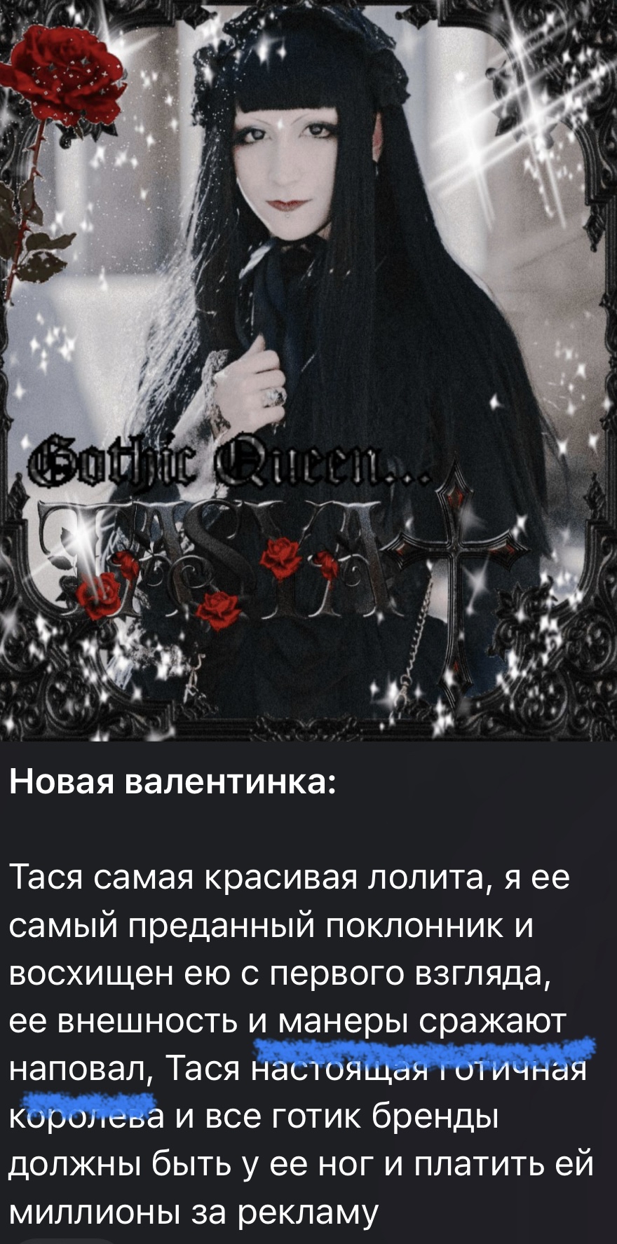 Ставлю / чтобы сбить вас лохушек со следа, а вы и байтиться рады Говорю своё мнение без обиняков Мне нравится какие у неё рисунки, чувство вкуса и корона diy неплохая была, даже завидная. Я не знаю её лично, плотно не слежу Но педосрач это параша какая-то, скучно вспоминать Обвинять Гарденерш в том что они друг с другом дружат тоже параша слегка, там людя явно разные собрались. Маричи не похуй на картинку, она воспринимает стиль как-то творчески. А сися Инфант вообще про другое, ей похуй как она выглядит, она живет, просто шмотки носит, творчески себя выражает в другом. А вы всех под одну гребенку, сисы