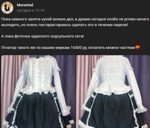 Несу на обсуждение интересный пример лолитной инфляции. Не так давно на авито и нашей вторичке висело объявление о продаже этого сета от Вивьен за ~15-16 тысяч, я честно засматривалась на него и не решалась купить. Оно висело достаточно долго и было снято, я подумала, мол, продали, погрустила немного и забыла. Через нное количество месяцев на авито появился тот же сет от той же продавщицы уже за 50к ;)) Схема продать его богатым нормисам не прокатила, и она вернула его на вторичен за те же пятьдесят.