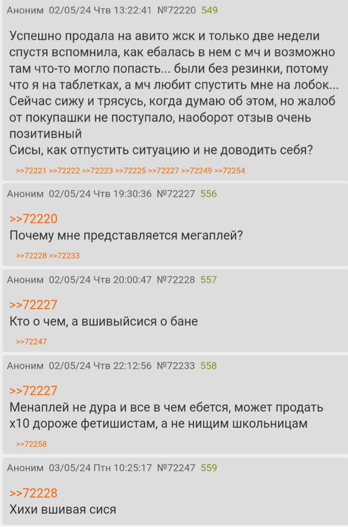 Прочитала эти посты с коммами, нихуя не поняла, видимо потому что не сижу в этих ваших чатегах, но поняла, что несколько тредов назад меня возможно приняли за эту клюкву и поэтому закидали хуями за безобидный совет.. печалька ((