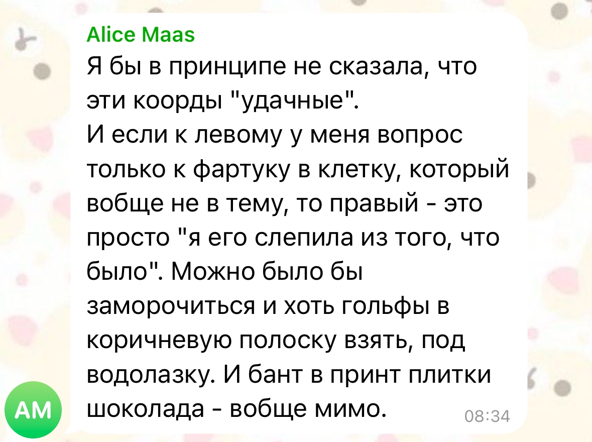 магаплей, не рвись предъява не в том, что у тебя дохуя вещей и их надо раздать страждущим, а в том, что у тебя нет вкуса и чувства стиля. поэтому ты можешь хоть всем бурандо мира обложиться, но в нормальные коорды из своей башки не сможешь, твой позор на вечеринке мд тому подтверждение напялить стоптанные белые сапоги к темному платью, пиздец, уровень начинахи из кф лучше продолжай копировать других лолиток и собирать коорды по образу и подобию, не пытайся в креатиффчик