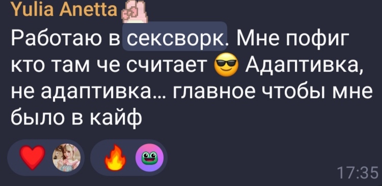 >>77551 Испытываю отвращение к тем, кто не просто в сексворке (это я как раз могу понять, ситуации в жизни бывают разные), но ГОРДИТСЯ этим и вещает из каждого утюга о том, как это "здорово" и пытается это нормализовать. У мегаплей беды с башкой, у фелтон беды с башкой, но почему-то все это хавают и никто не говорит о том, что здоровых в сексворке нет, что это сказывается на психике и теле и доказано деструктивно.