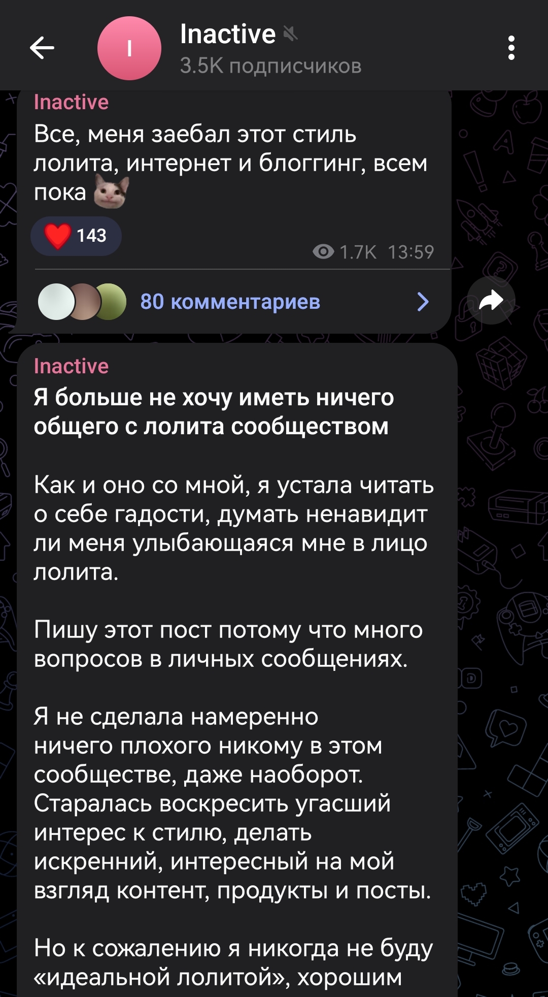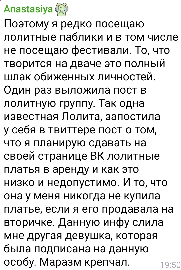в 2016 отдала 2 пакета с бодиком одной лолите за бесплатно, до сих пор помню ту встречу в метро, какая же я дура молчу про проданный гардероб ар, той парад за 4 тысячи эххх Какая самая запоминающаяся покупка или продажа платья у вас была?