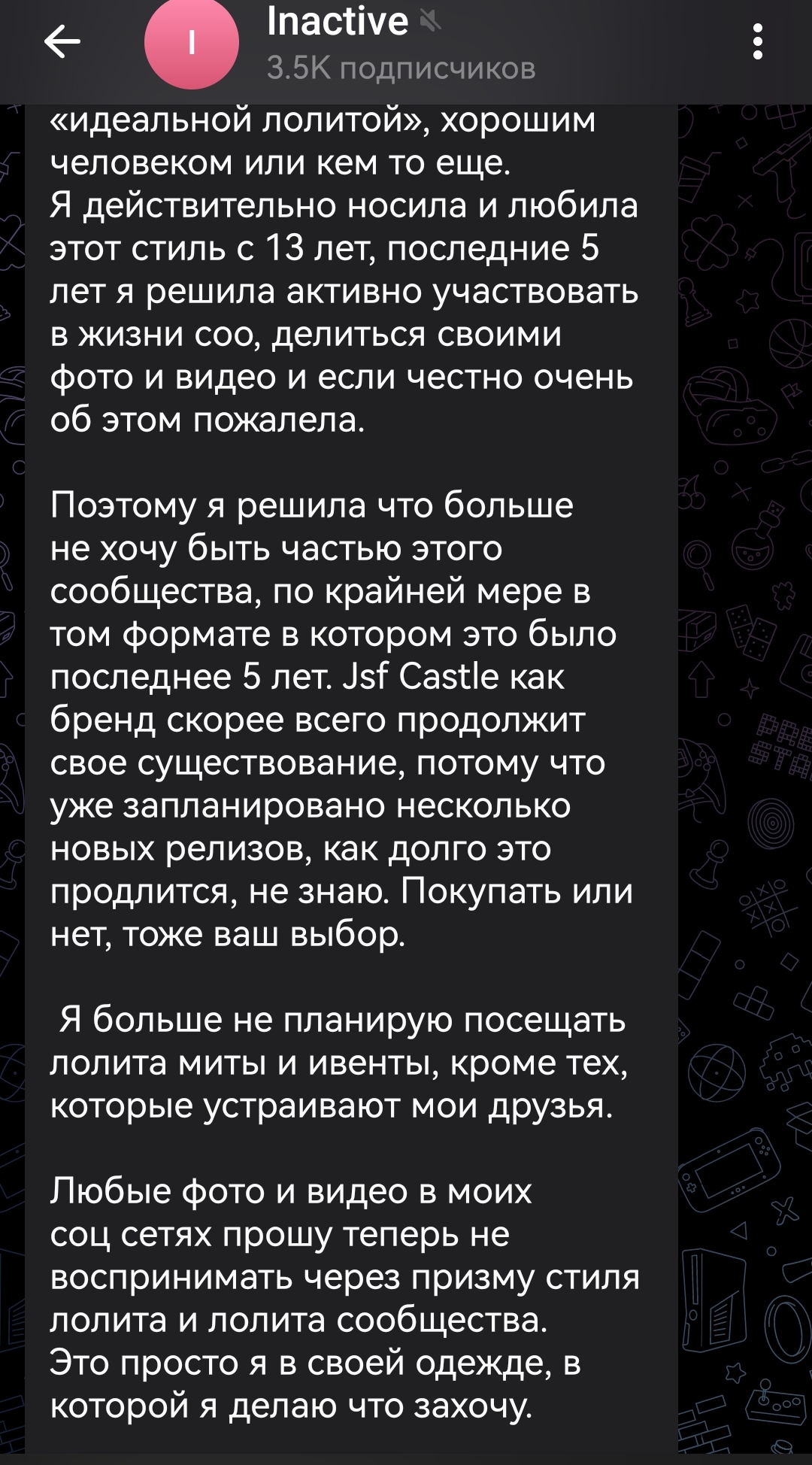 А я не понимаю как люди в rebellious lumb ходят Стоит дохуя, качество - говно, все кто его носит выглядит максимально cursed. Сами платья сшиты криво, выглядят как та самая ита реплика с вайлдберис, примеров красивого корда с ними вообще не видела, одни только иты в цивилобуви и с матней на голове.