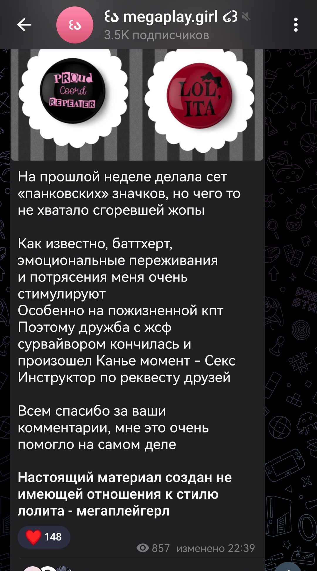 >Ммм, пук сренк... Не имею отношения к лолите!! >Значок с знаком "лолита" Wutt??? Она что каждый день чекает треды про себя или что? Жопа горит вкусненько
