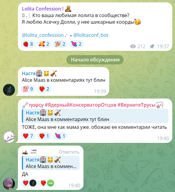 Спасибо за перекат. Правда на будущее: на главном пике с названием треда всегда были лолиты из сообщества (или я кого-то сейчас не признала), шапка длинная, много лишнего. Что за колхозницы? Впервые о многих слышу. Если сюда не тащили и не обсуждали, то нет смысла в шапку пихать, имхо.