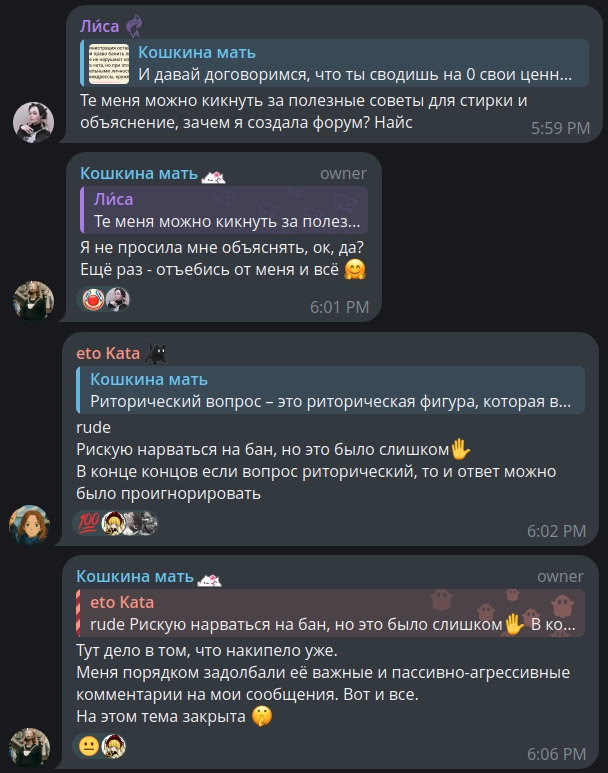ОП-тян, спасибо за перекат :3 уже понабежали недовольные бабки из пещер, которые не сидят в тг и в душе не ебут, что происходит сейчас в соо. сидели бы в тгшных чатиках и кф - знали бы всех, кто в шапке.
