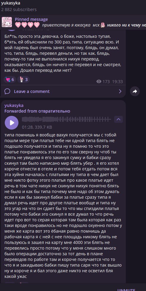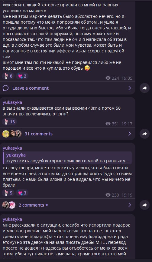 Видали тему с кражей? Какая то нонэйм наркодетище юкисука спиздила платье в итоге, и свалила мол ее каблук не оплатил. А когда пригрозили полицией устроила треш, но в итоге обосравшись оплатили, ссылаясь на то, что тинкоф отменил перевод на маркете кеке