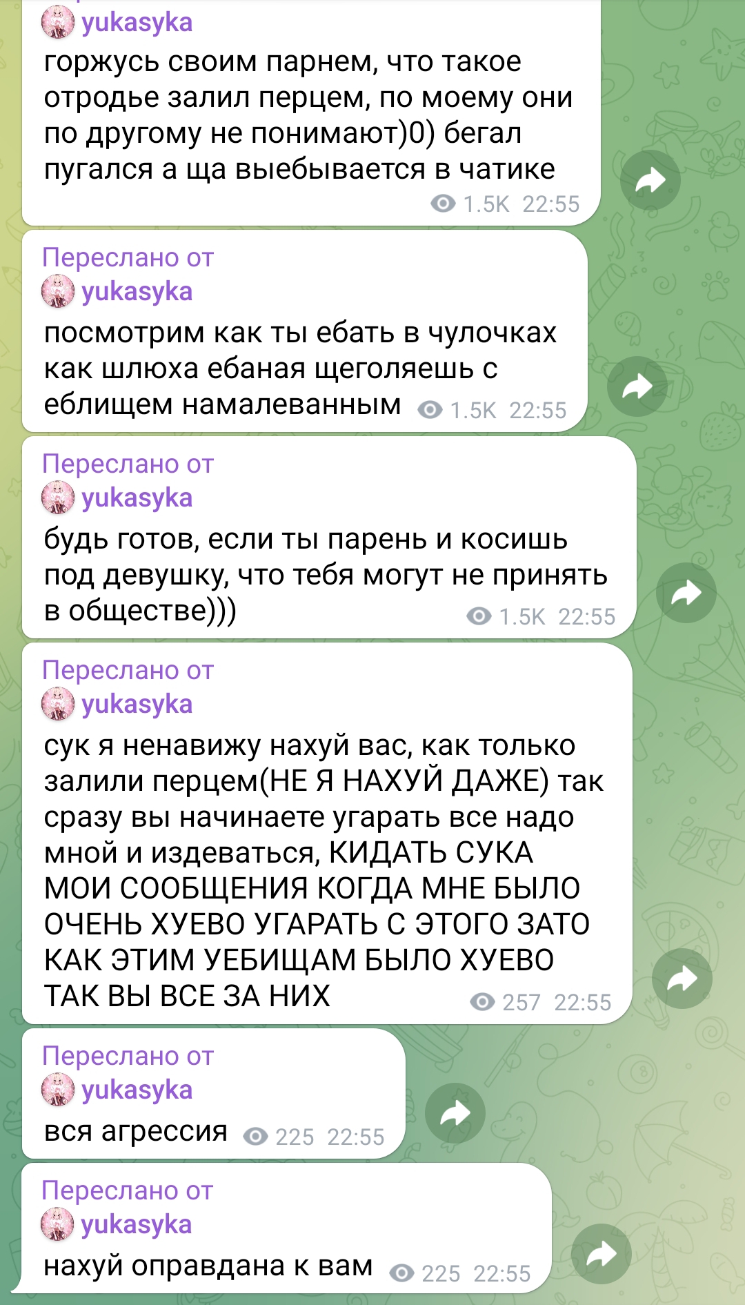 >>78127 Я другая сосиса Сегодня в цдм гуляли пара-тройка ребят, кто жсф, кто просто нефоренок, и на них начали выебываеься Юка (та воровка) и ее ебырек. Он ещё орал, как хочет им набить ебало:) То ли из-за внешнего вида, то ли из-за чего-то ещё. Те ребятки засняли их на камеру, и раскидали видео по паре телеграм каналов, мол, смотрите долбаебы лезут к нам. А после видео юка с ебыркем их залили перцем прямо в лицо и отпиздили Кстати говоря, эти двое были под веществами В общем, стычка антисоциального быдла по которым плачет не то что дурка, а сама ВОЗ с нефорами
