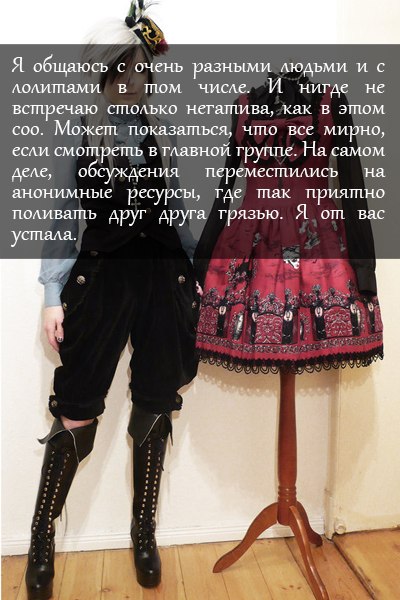 Всё обернулось тем, что я совершенно перестала выходить на связь и отвечать на сообщения а переписки у меня практически всегда масштабные, приходится очень много писать - было не до этого, а оставшихся сил хватало лишь на то, чтобы молча скроллить 24/7 паблики, тумбу и лолитач, выливать боль и отчаяние в твиттере, а также изредка поигрывать в игры и почитывать мангу. Ну и ещё до недавнего времени на митики продолжала активно ходить. Те знакомые, которым не очень-то и надо было, не придали моему поведению значения. Те, с кем я близка ирл, поддерживали и подбадривали. Те, кто далеко, но кто мне очень дорог, относились с пониманием и не сердились. Но не моя лучшая подруга.
