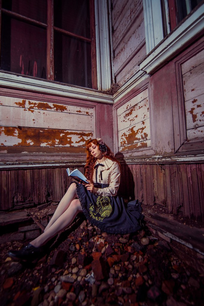 >>11975 Обрати ещё внимание, что страницы имеют синеватый оттенок. Это наводит на ассоциации с голубым небом, которое на фоне серого и мрачного окружения говорит нам о сказочном мире, в который попадает героиня с помощью книги. Кроме того, синий - цвет интеллекта, что говорит нам о том, что героиня фотосюжета - умная.