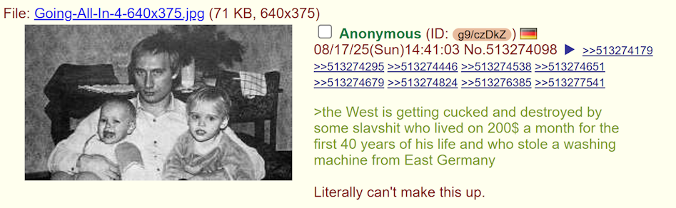 >>1315463 Все тяночки всё равно пойдут подлизываться к номенклатуре партийной, а не к тебе. Ведь у них будут чай, водка и сигареты, а у тебя будут трудодни.